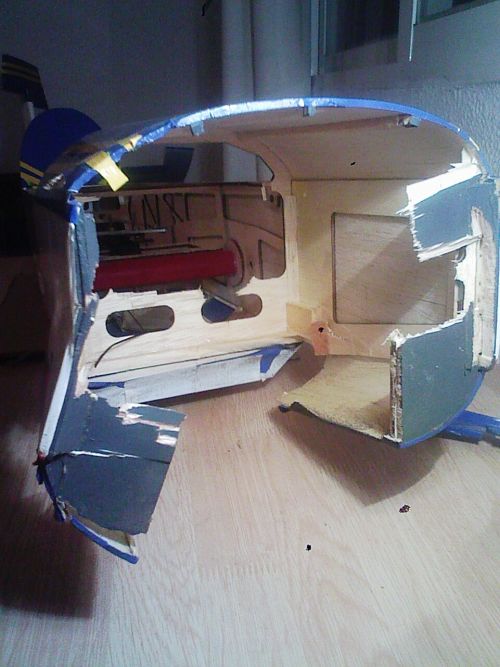 utilizo masilla aquaplast para reconstruir un trocito de balsa del capó