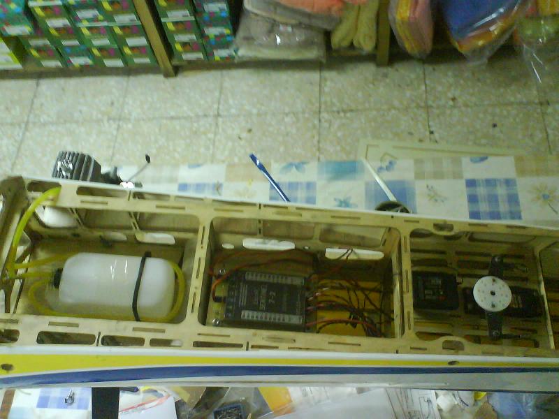 Buenas , bueno el avion esta listo a falta de sujetar las baterias y de que nos suelden el codo del canister y conseguir un codo que nos hace falta , hemos intentado curvar el tramo recto pero es tan corto que es imposible y se achuchó.Un amigo nos esta mirando para ver si nos consigue un codo.
