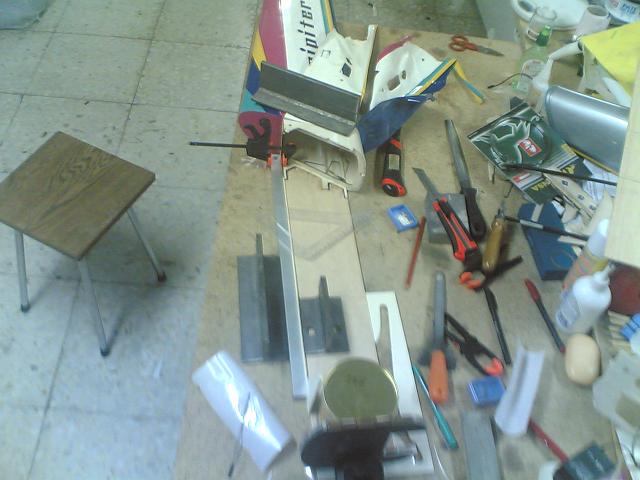 . Desanimado lo deje junto a todos los cachos y ahora lo he vuelto a coger y poco a poco lo iremos reparando.De momento la semiala que tenia poco golpe , tan solo 3 costillas , ya esta reparada.