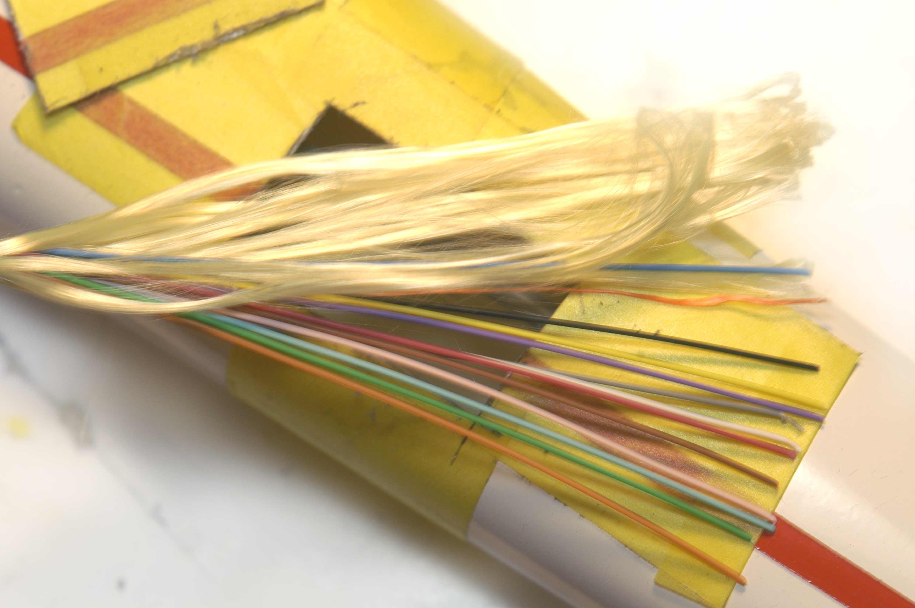 En la primera foto veis de donde saco las mechas de kevlar ( de los cables de fibra óptica).