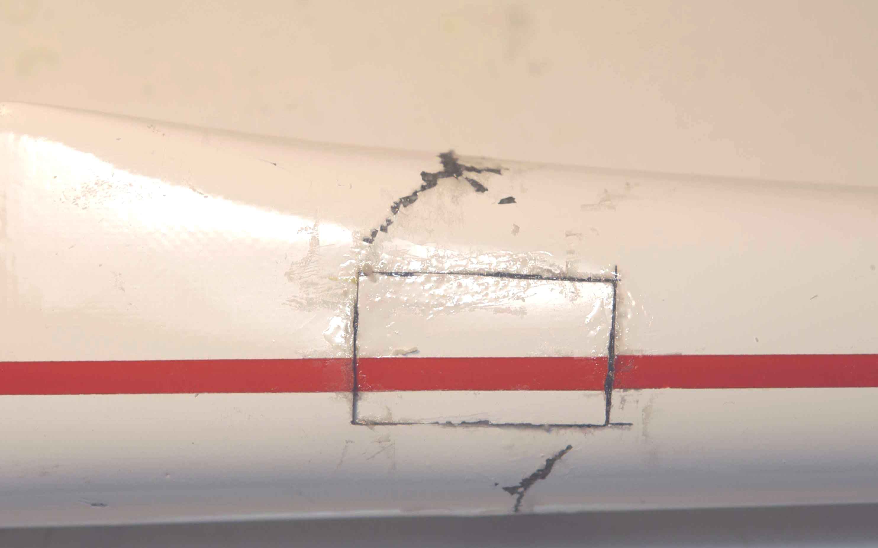 Despues de un aporrizaje, tengo el fuselaje de fibra del Pajaro del Tiempo un poco dañado, el problema es que por dentro no puedo meter fibra, ni resima ni nada, me lo impiden la cuaderna y las dos bancadas que hay en la zona. He pensado ponerle por fuera, despues del lijado de la pintura, una faja de fibra con epoxy, pero me quedaria muy feo y destrozaria la linea del fuselaje; quitar las dos cuadernas y las dos bancadas creo que seria peor aun. ¿que solucion creeis vosotros que puede ser la mejor?
