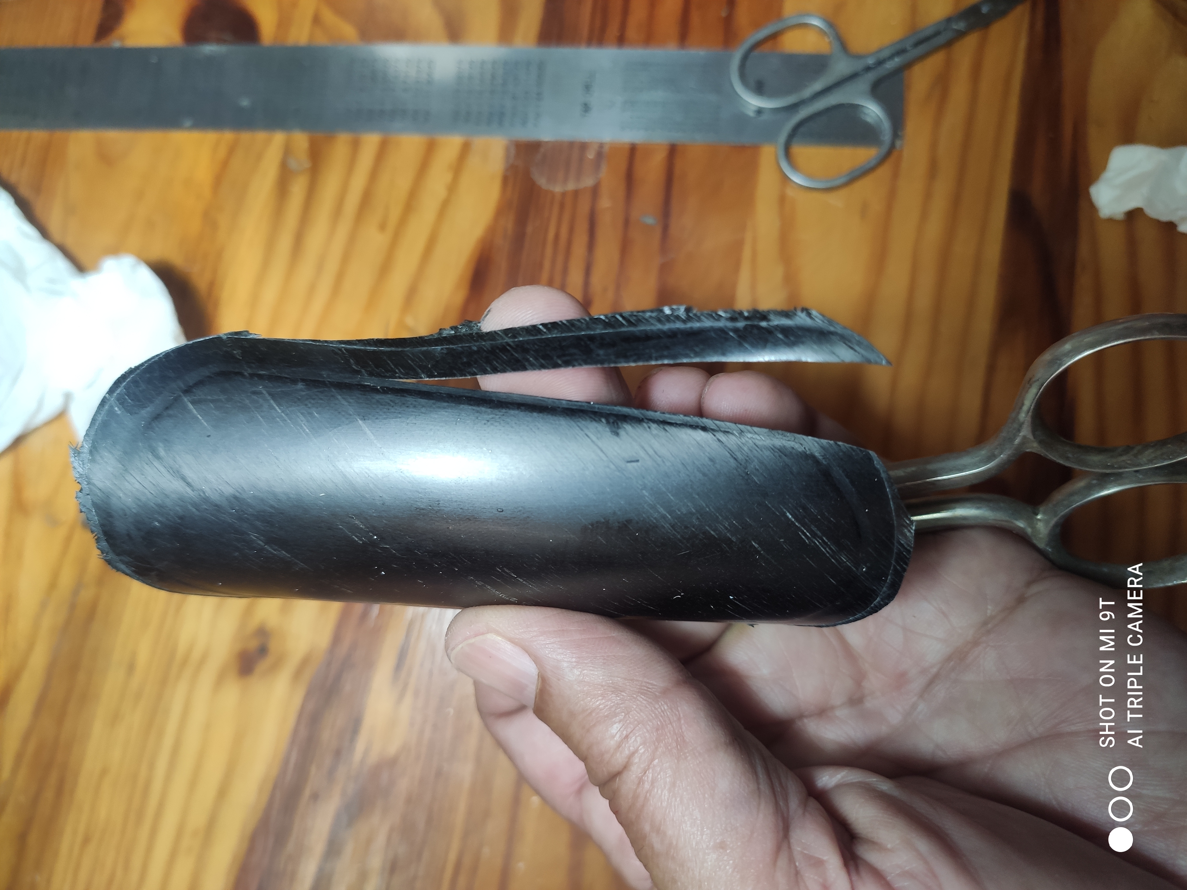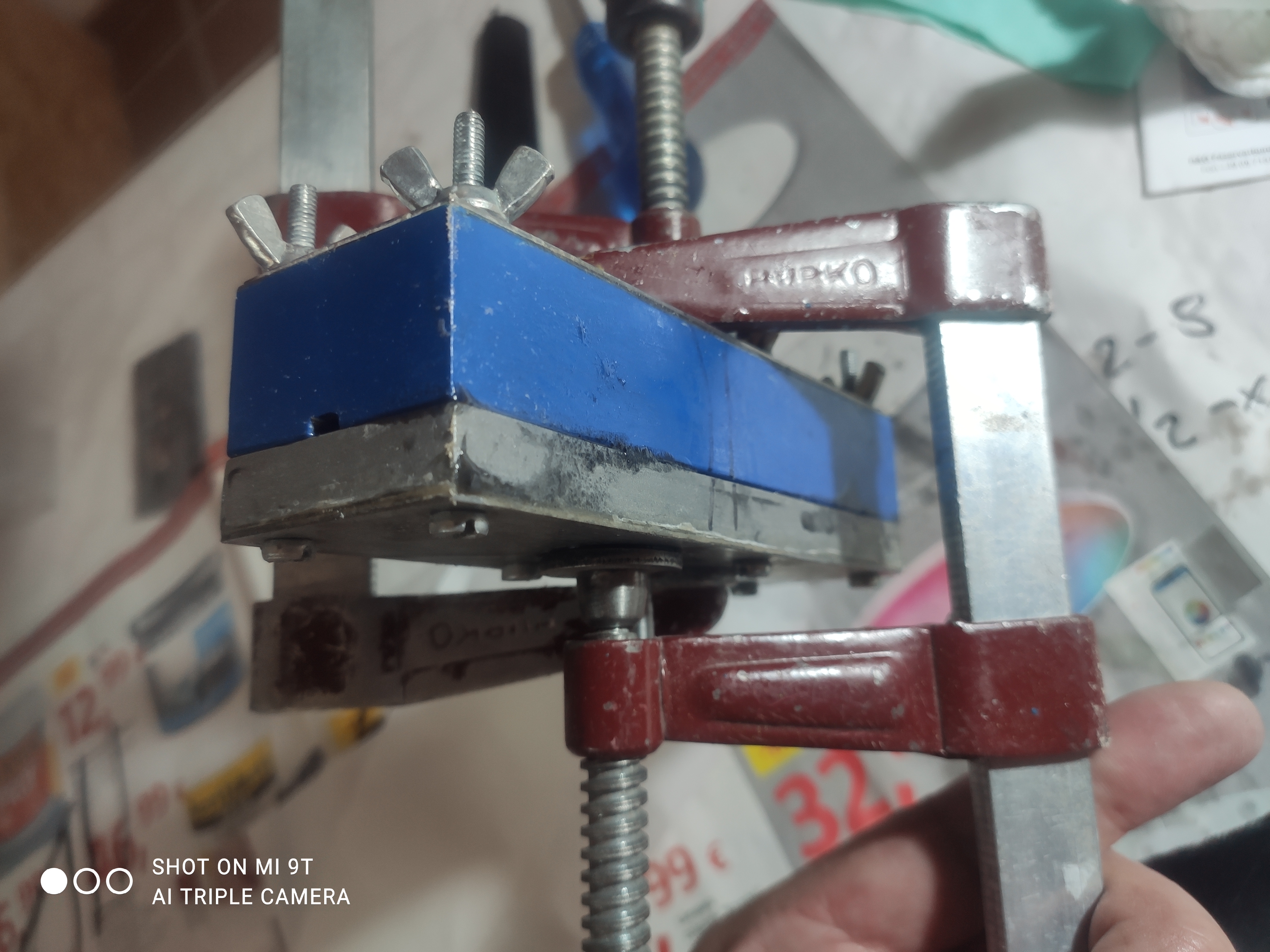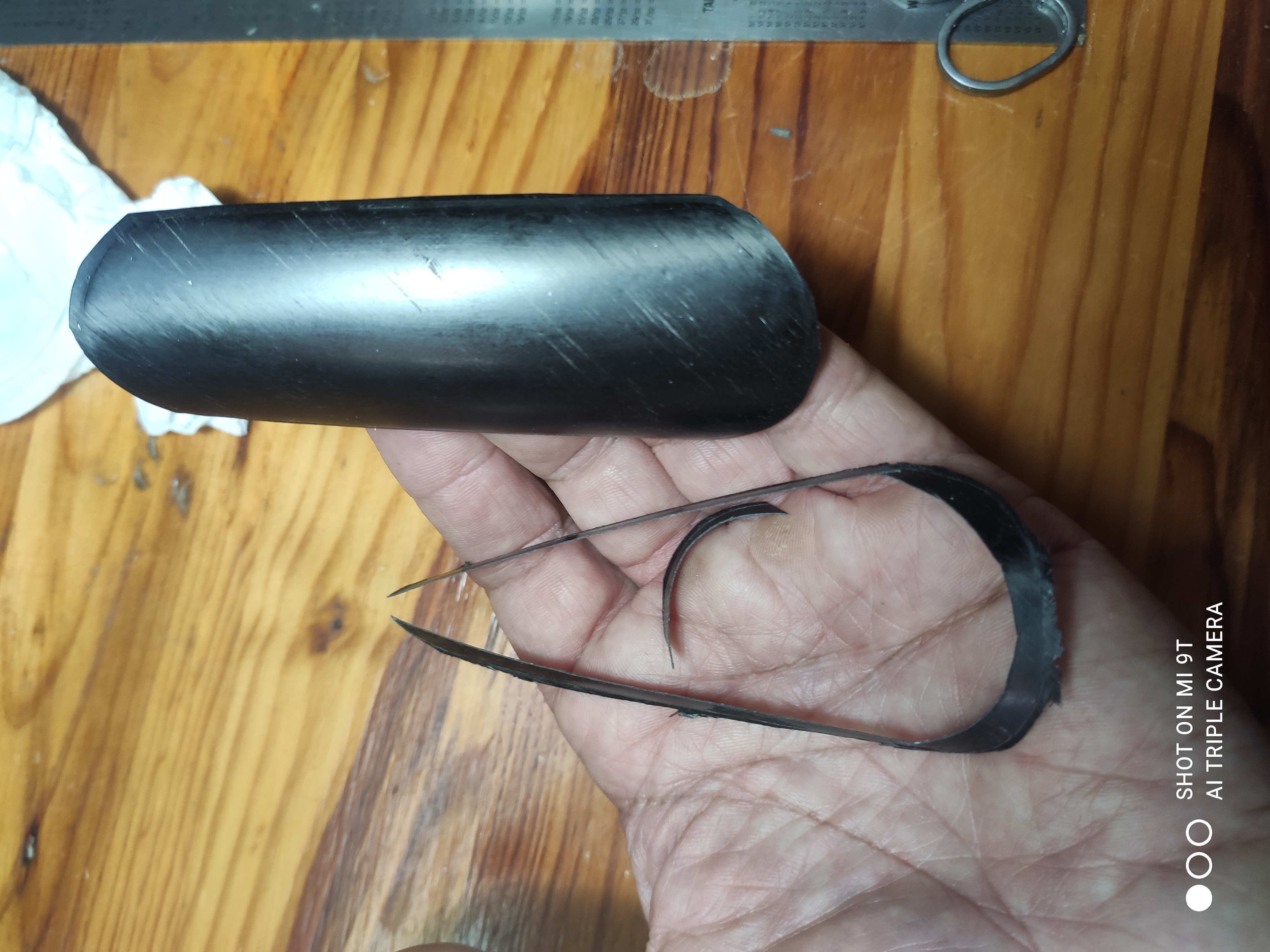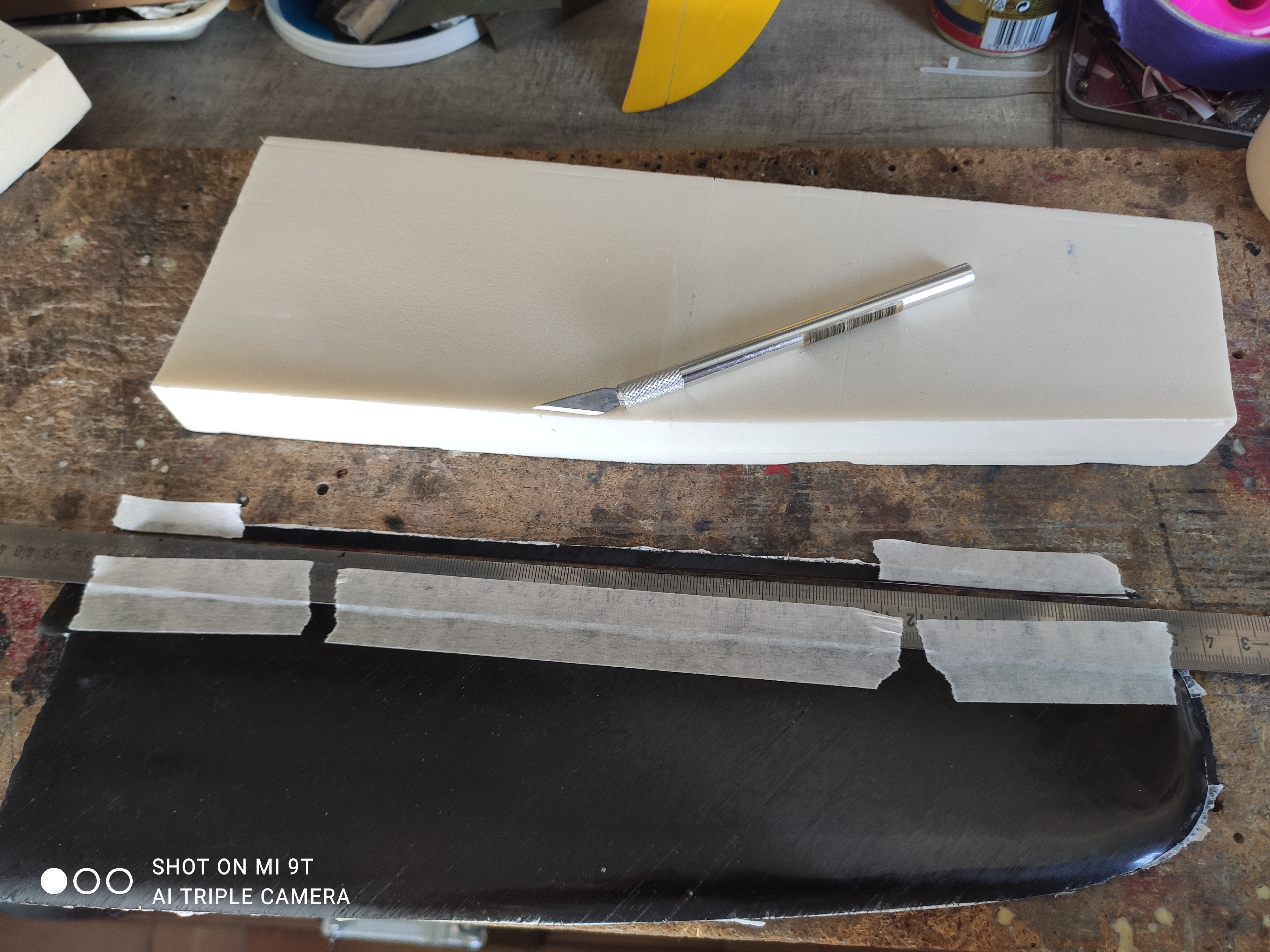 La bancada del motor se ha recortado de una placa de carbono hecha en casa con 3 - 4 capas de carbono de 200 g/m2 prensada entre dos tablas, como plantilla viene bien un trozo de cinta de pintor sobre la que trazaremos una circunferencia de 30mm, en este caso, para los agujeros de los tornillos nos vendrá bien una bancada metálica de esas que salen en los motores con la que podremos marcar los puntos a taladrar.
