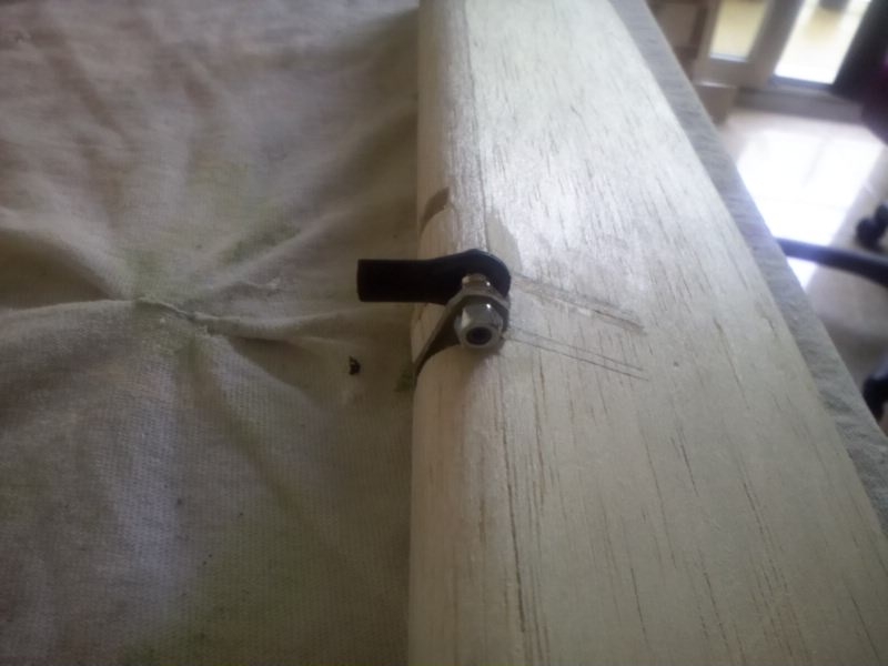E decidido cambiarlo practicamente todo para que quede casi oculto.primero Cambie la posicion del servo con respecto al aleron,tambien la varilla de mando,y los famosos kwi links por rotulas para un movimiento mas preciso.Sustituyendo el tipico horn de plastico por uno echo en plancha de fibra g10 que va embutido en el borde de ataque del aleron.Comprobado una y otra vez ,las deflexiones son mas que suficientes.Aun estoy por decidir si el servo de aleron sera HS645MG o MKS1210.