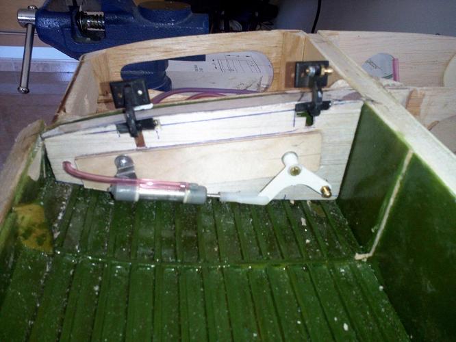 Hola,despues de darle muchas vueltas a si pongo compuertas interiores o no,y a la complicacion que supone,he dedicido(como no podia ser de otra manera) tirar p,alante con el tema.Despues de mi experiencias previas con el rollo de las compuertas,decidi que fuesen actuadas por aire,ya que si lo hacen movidas por un servo si no esta bien echa la instalacion hay muchos numeros de que el servo acabe chamuscado con el peligro que esto supone,Bueno pues.una vez decidido a hacer el movimiento con un piston,hay que decidir donde ponerlo ,el angulo adecuado,si tiene el recorrido correcto,si abre bien la puerta si cierra donde toca,etc etc etc.. :P :P :P :P ,en fin una comida de coco!!y despues de probar varios prototipos con acabados chapuceros y copiar algo de lo que e visto por ahi e optado por la siguiente configuracion,me parece la mas fiable y accesible.Todo este sarao "solo" para decidir donde pongo el actuador,,por otra parte esta el abisagrado ,ya que al ser la superficie del ala curva tiene su rollo..y menudo rollo!!!! :P :P