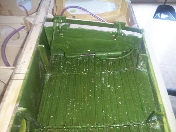 Bueno,al lio,los pozos del tren estan enfibrados ,pintados de zinc chromate green y un poco maqueados.flaps y alerones listos,es el momento de montar las alas y ver como va quedando!! :D :D :D