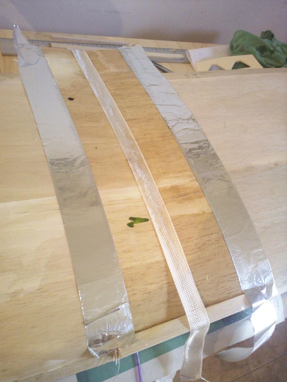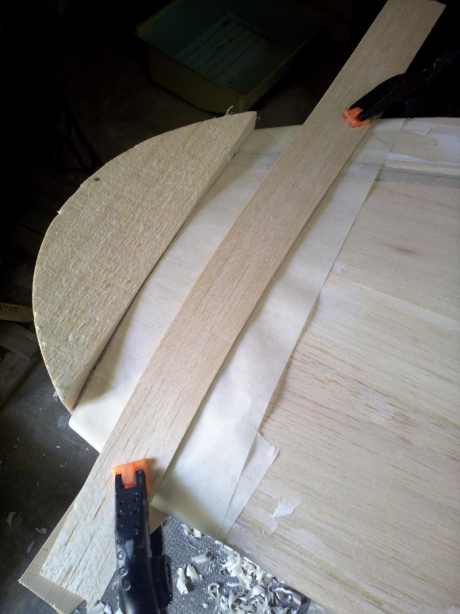 la cinta adesiva es para proteger la plancha de balsa,y los listones con pinzas para tener el aleron centrado.