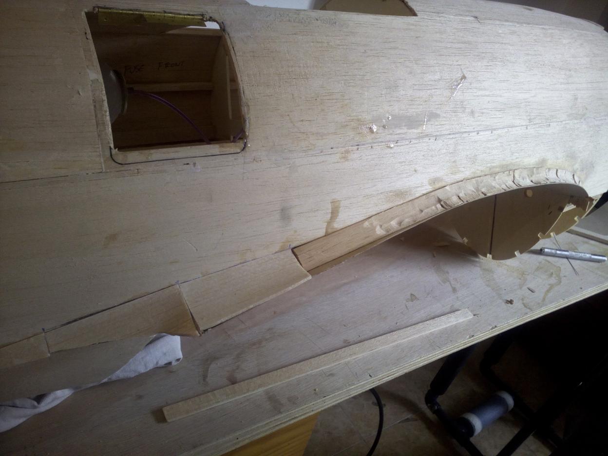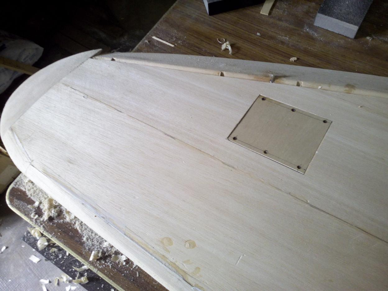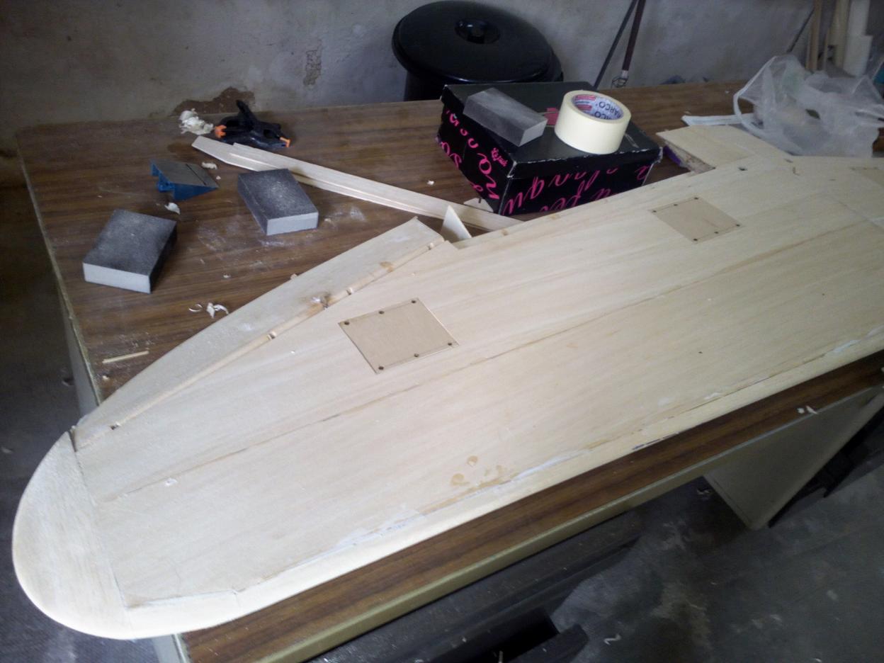 Hola,el fin de semana a sido productivo,el ala ya esta lista para montarle la panza.los alerones ajustados y lijados.Tambien le di otro pequeño empujon al fuselaje,por otra parte y siguiendo el consejo de los que mas saben(muchas gracias) he reforzado la zona de anclaje del ala al fuselaje.Si bien yo por mi cuenta ya hice mejoras en cuanto a la sujecion de los tornillos,ahora he añadido un larguero de haya y una base de contrachapado finlandes de 3 mm con lo que la zona en cuestion ha ganado mucha robustez!!! :D por supuesto pegado con epoxy y microbalones!