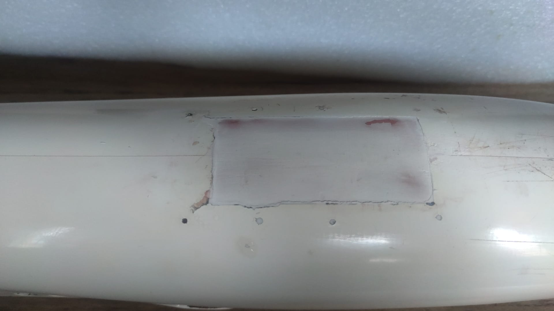 Como comenté anteriormente, el anterior dueño no conservó el trozo de fuselaje cortado cuando instaló la rueda retráctil, y había un agujero en la panza espantoso...
