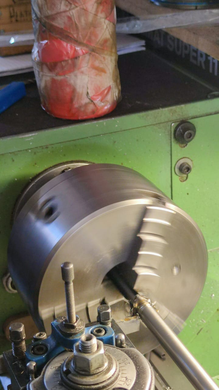 Después limpié la zona interior, corté un disco de una placa de fibra de las usadas para circuitos, le hice agujero central, cuatro pequeños para los tornillos, y con epoxy y microbalones, lo coloqué en su sitio.