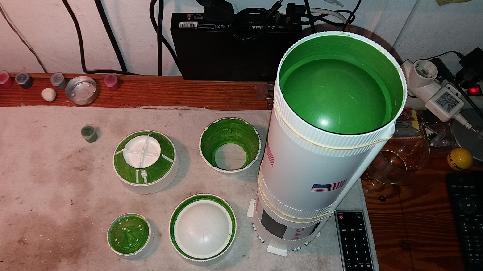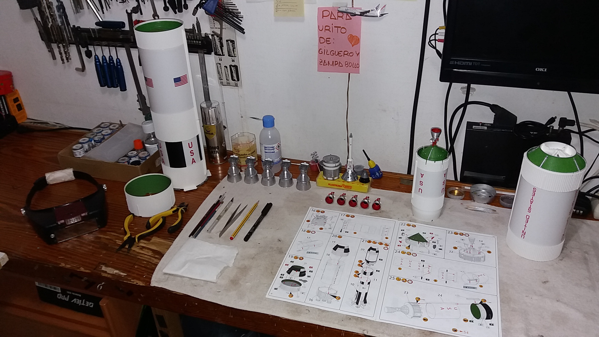 El cohete fue otro proyecto de varias semanas, una maqueta para montar, la mas grande que he hecho y viene con infinidad de detalles, disfrute su montaje y quedo preciosa. Te dejo algunas fotos.
