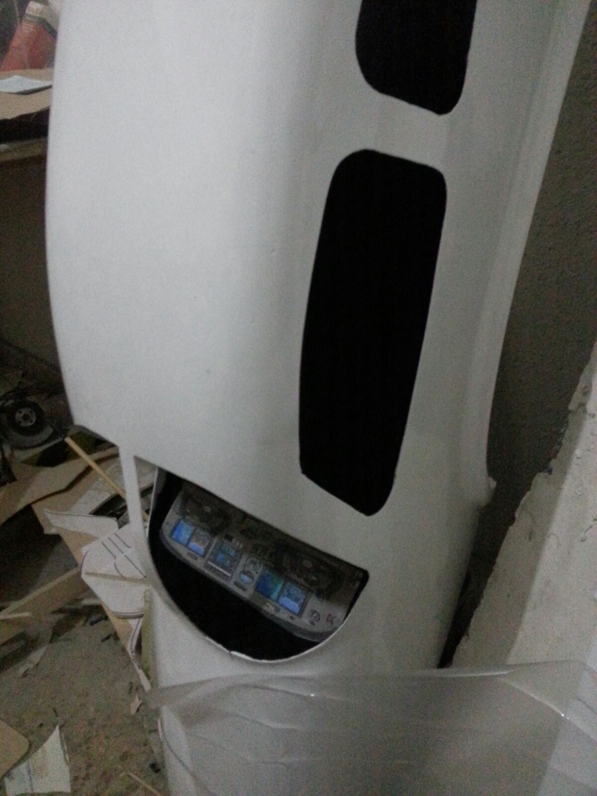 Cristales recortados para poner en acetato.vinilos fuera.lijada.masilla y aparejo.