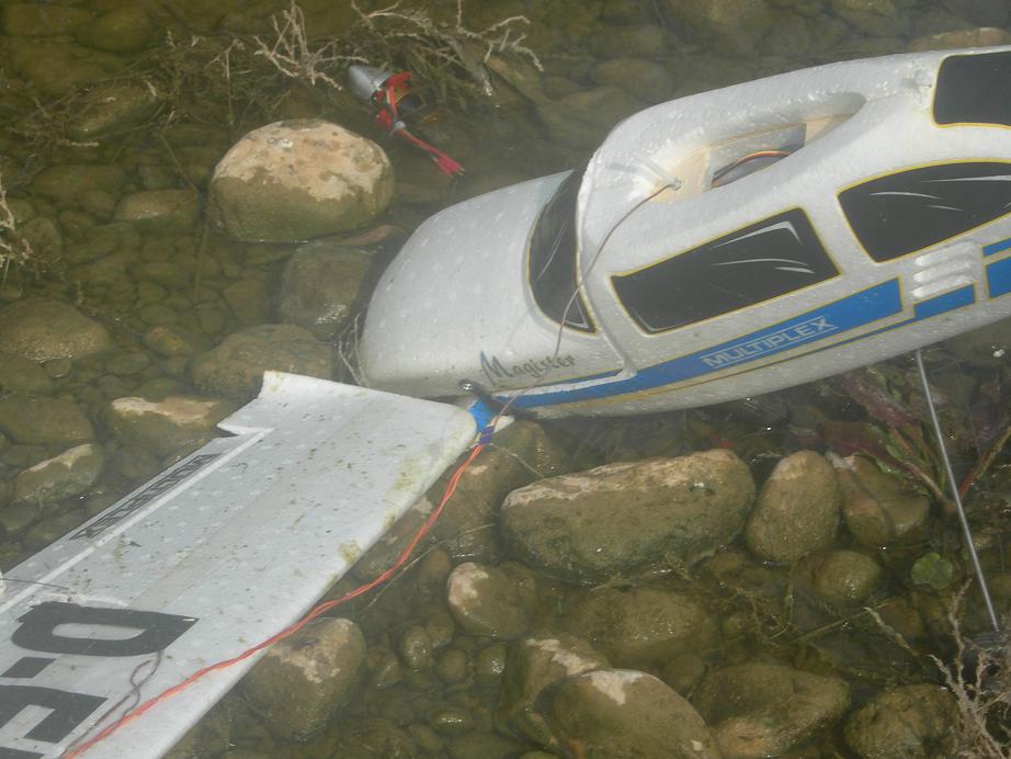 hola os pongo una foto para que veais como quedo un magister despus de que se le desconectara el cable del servo de los alerones