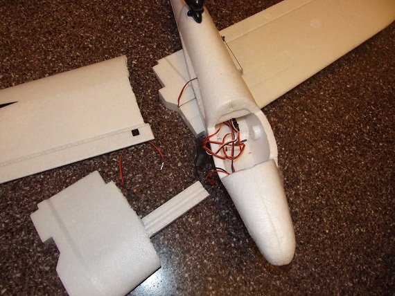 ya lo tengo medio reparado, en cuanto al ala, le he puesto unos trozos de cobre (muy ligeros) de un lado al otro travesando el corcho, y la he pegado con D4 (no se si lo conocereis) es un adesivo expansivo bastante fuerte 90kg/cm2, en principio es para madera, pero viendo las cualidades del epp/corcho/epo o como lo querais llamar, me parece que funcionara bien.