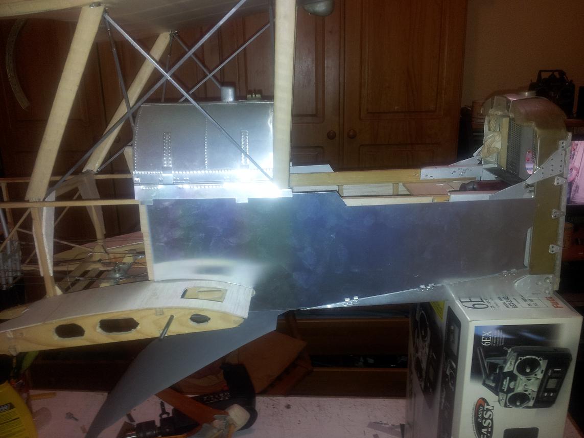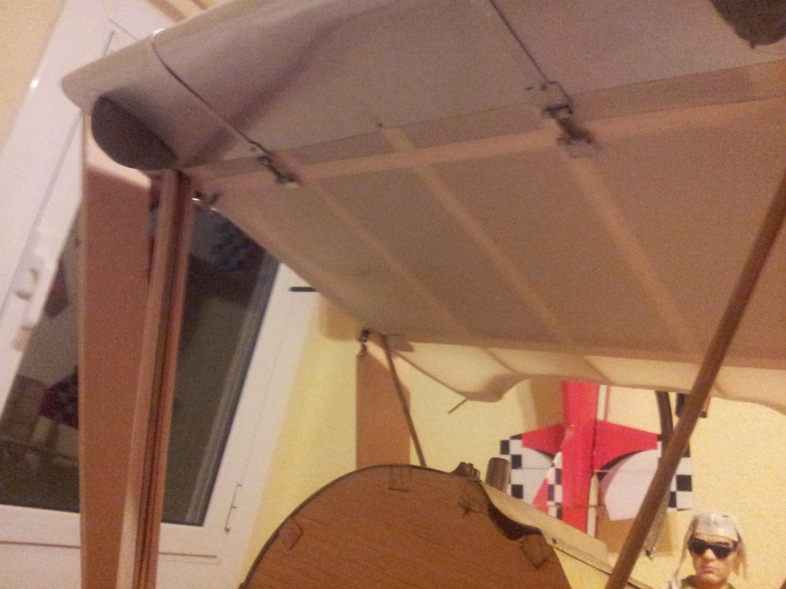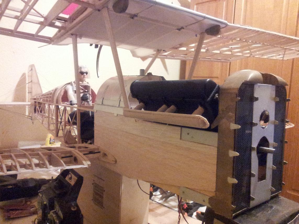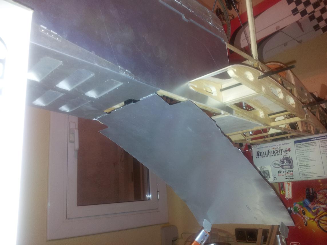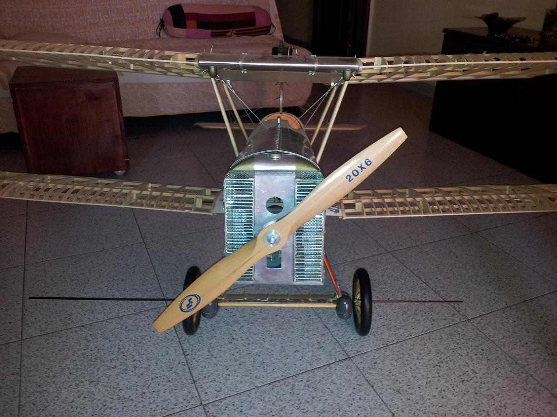 Saludos! me alegra q t guste mi trabajo,no tengo mucha experiencia en chapa,lo empecé con plancha d aluminio 0,72,q es con la q está hecho el primer depósito,posteriormente,mi primo vino a casa con planchas de 0,3,ni siquiera estoy seguro q sea aluminio,pero su aspecto es más metálico y,obviamente mas ligero y maleable,asi q rehice todas las piezas ,permitiendome este material curvarlo para hacer las bisagras,trabajarlo a base d cutter y doblandolo hasta fatigarlo,un trabajo silencioso (lo cual me facilitó la ejecucion tambien) la rejilla del radiador está hecha con el de 0,72 del cual mi primo me cortó unas tiras,y unidas con nural,tambien me han preguntado por los planos,se trata de un plano q hice calcando de la pantalla del ordenador una ampliacion del plano a 3 vistas del Windsock datafile special,posteriormente modificado ya en el modelo en base a visualizacion de practicamente toda la informacion gráfica disponible en la red (me duelen los ojos de mirar fotos),aparte de falta de tiempo me ha estancado la dificultad del tren de aterrizaje (el cual quiero dejar colocado antes d acabar el chapado del morro) ya q todas las chapas s abisagran entre si,y dejar un acabado q m satisfaga (a medida q avanzo lo quiero mejor,je,jee) los pequeños carenados del tren son complicados,pero vale la pena comerse 1 poco el coco para darles la apariencia y resistencia q sin duda quiero,me encanta este proyecto y casi m da pena acabarlo,pero bueno,detras iran otros....
