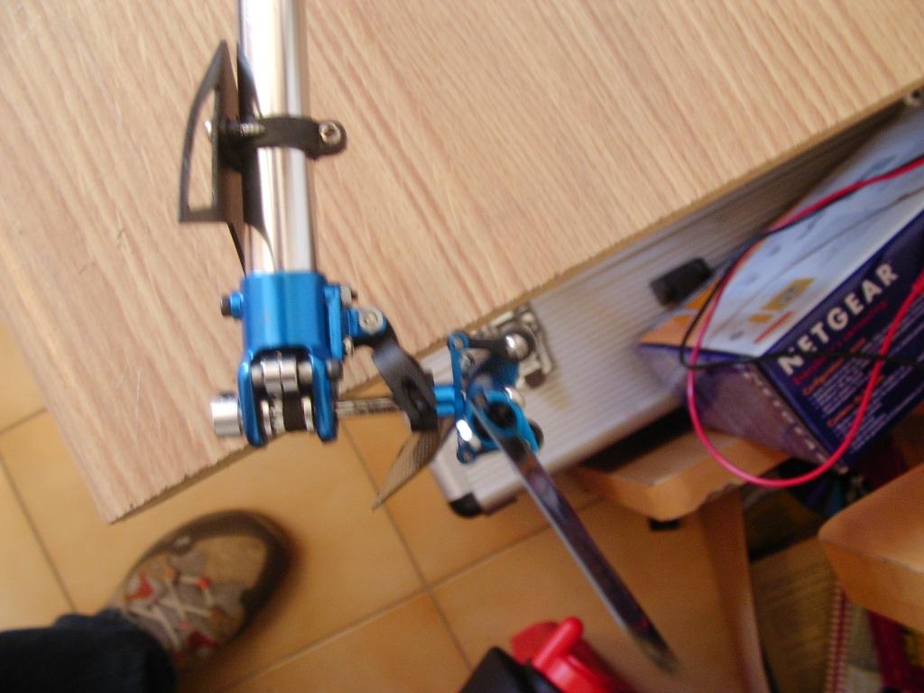 Buenas, tengo un problema que no he conseguido paliar desde que tengo el walkera, y es la poca sensibilidad que tiene la cola, es decir, cuando doy mando gira muy lentamente sobretodo hacia el lado derecho... esto me afecta mucho cuando intento realizar una trepada rapida o recuperacion (me mete la cola hacia la dcha) y tengo que andar comnpensando a mano... pues bien, he jugado con todo, rpm, curvas etc.. no se si es algo comun en este modelo de walkera, pero es algo que no me deja progresar en vuelo, sobretodo poruqe ese problema se acentua cuando empieza a bajar rpm el modelo por falta de chicha.. la mayoria de los porrazos han sido por metida de cola a baja altura sin tener tiempo a reaccionar.... que conste qeu la cola la consigo dejar quieta con el gyro, esta super alto de sensibilidad, yo creo que es un problema mecanico, es decir que no mete suficientes grados para compensar la rotacion.. pero el problema es que fisicamente no puede meter mas grados la cola.. os pongo unas fotos para que veais lo que os digo.......