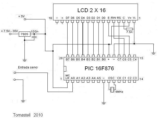 con un PIC 16f876 y una lcd 2x16