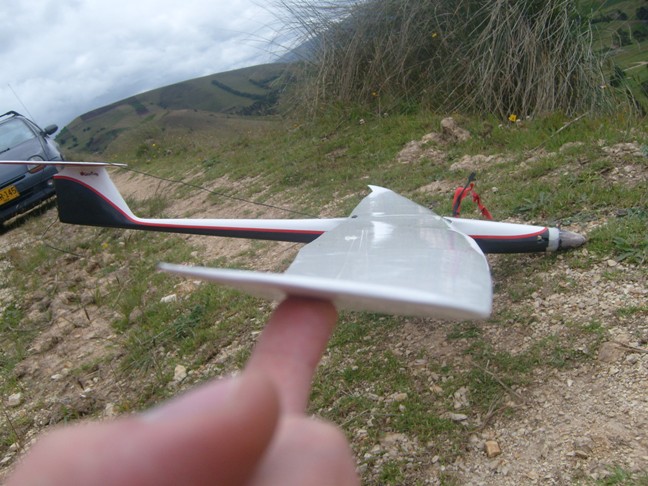 Ahora le hice un ala completamente nueva, de dos piezas, y promete bastante, por ahora esta en vuelos de prueba.