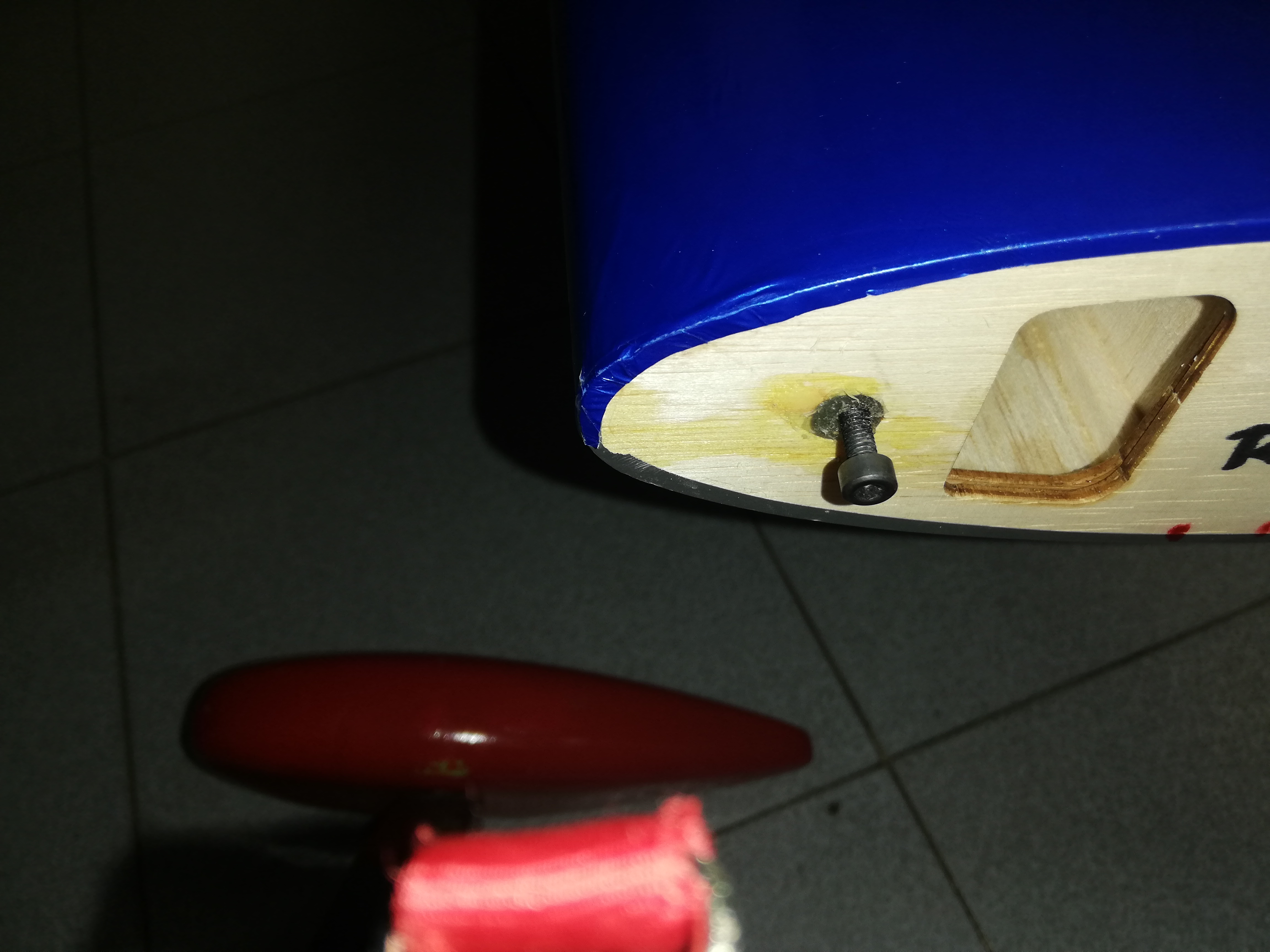 Los taladros son los originales en los que con un tornillo Allen de 4 mm (para poder reglarlo) lo monto sobre la rosca existente en el ala. Si le pones pegamento caliente (el de barra) le da más cuerpo, para mejor sujeción del tornillo.