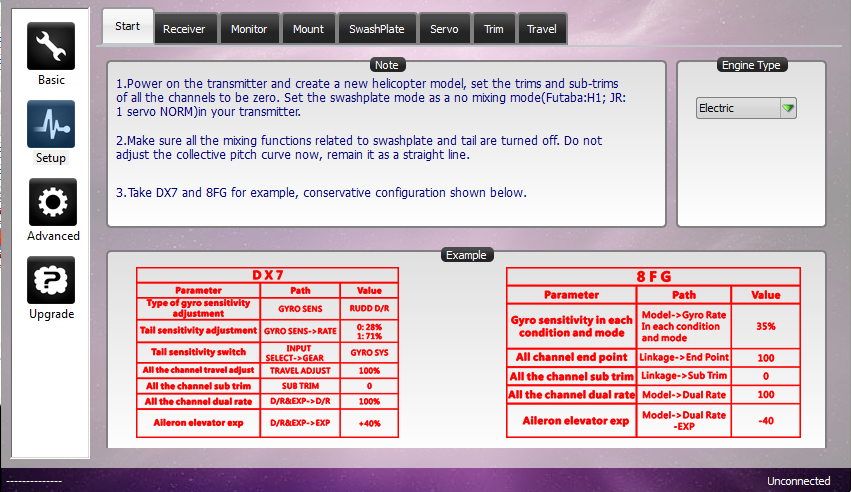 Abro este tema porque me encuentro un poco atascado en la configuración de este sistema... ¿las configuraciones de la emisora hay que dejarlas lineales?¿como se le indica vuelo "normal" y "3d"? y sobre todo tengo problemas para configurar la cola.... aquí ni idea de como hacerlo. También la aplicación te da unas pautas de como configurar la emisora, pero no se cual elegir para la mía, una DEVO 8s. ¿Alguien tiene este sistema y me pueda dar un poco de luz?