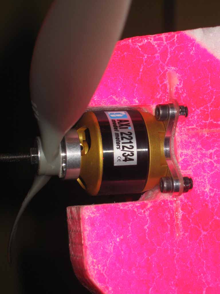 Claro... dije que mi configuración necesitaba ese motor, ya que llevo unos giganteservos (Multiplex Nano-S), un mini receptor (de esos pesaditos para indoor), lo abisagré con cinta americana impregnada de epoxy y lo ensamblé sobre todo con epoxy (aparte de las reparaciones). Resultado, un avión muy pesado y con mucha carga alar.