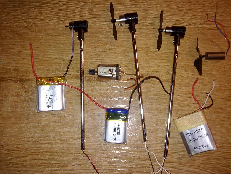 Yo tambien llevo tiempo pensando hacer algo asi pequeño,tengo varios micro motores de los helicopteros esos muy pequeños y compre varias baterias de 100mA 200mA y 450mA de lipo,el cableado lo puedes hacer de hilo esmaltado de algun transformador y no pesa nada y lo puedes pegar con celo y no tienes que pelar de nuevo el ala.