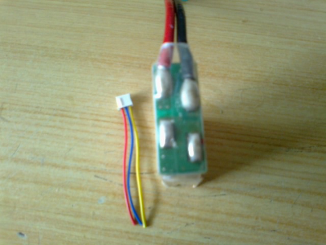 El conector lo he reciclado de unas baterías rotas que tenia de 3 elementos,cortando el último cable y recortando con un cuter el conector,de tal manera que el cable amarillo que se ve ahora tendremos que suponer que es el negro.