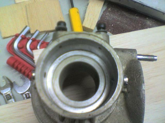 Hola compañeros, os pongo alguna foto de lo que le he tenido que hacer a un mvvs 45 mg, para que el rodamiento delantero nunca rotase sobre la pista exterior con el carter pues esta rotación es la que ha originado la avería del motor y gripamiento del rodamiento.