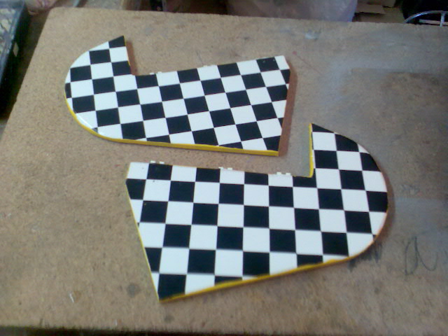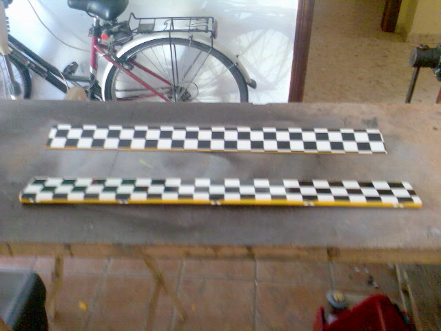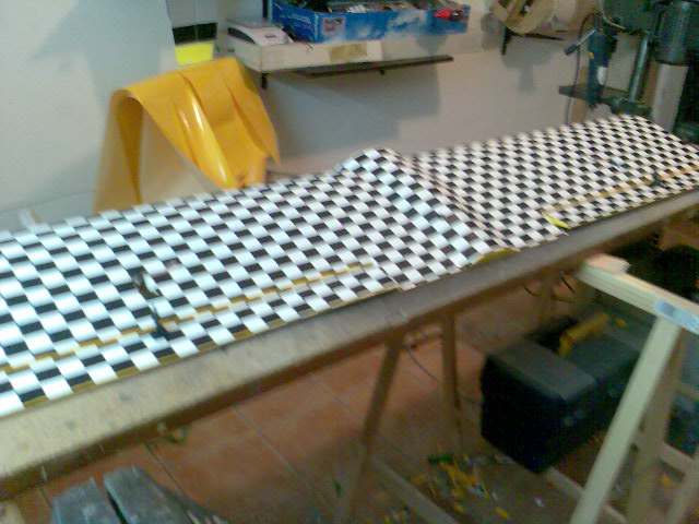 Hola sergio-jet, los cuadrados estan hechos con rotulador, regla y mucha paciencia. :D :D Es broma, es oracover que ya los trae impresos, lo hay como el que he usado y tambien con cuadros amarillos y negros, o rojos y blancos. Un saludo.