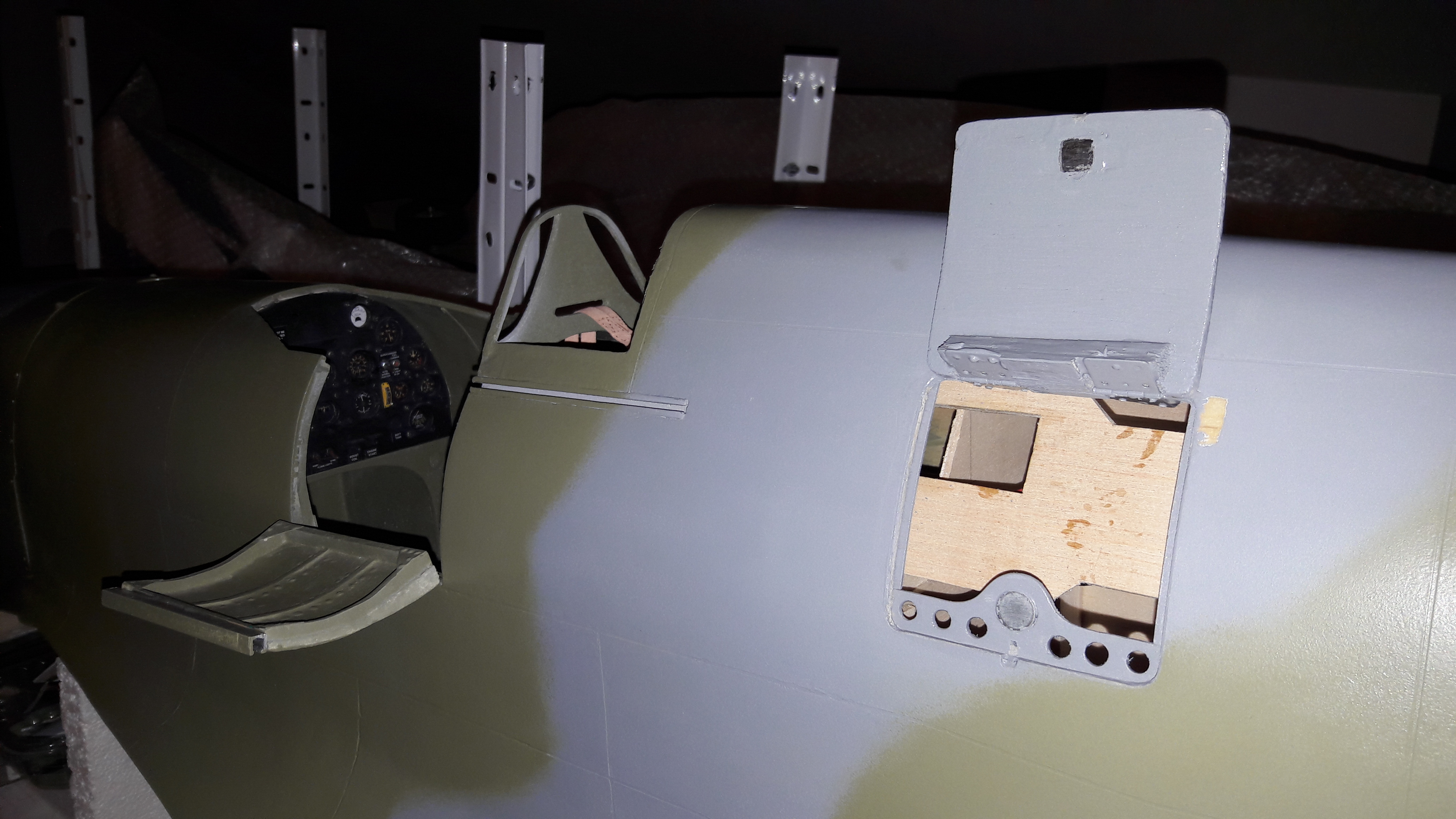 Hola ,ya he dado un paso mas,y tengo el fuselaje totalmente listo ,a punto de empezar a calentarme la cabeza con registros y cabina.para empezar me he liado con el compartimento donde el spit llevaba la radio,y que en mi caso llevara el interruptor ,toma gas ,etc.me ha llevado tiempo inventarme el cierre puesto que quería algo a escala y a la vez practico.Despues de varios intentos sin exito e optado por lo practico,y e fabricado un cierre de 1/4 de vuelta con un muelle,y tornillería m2.