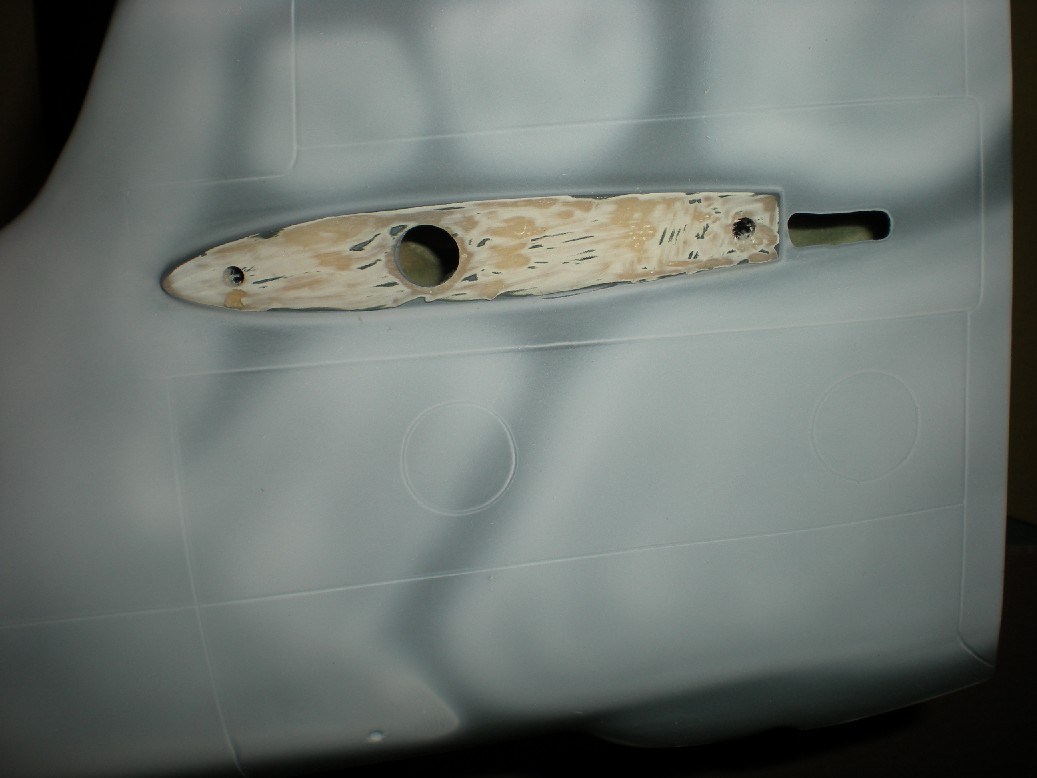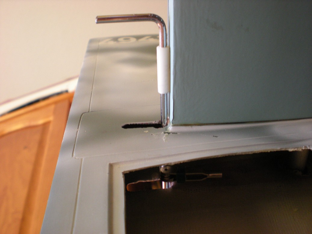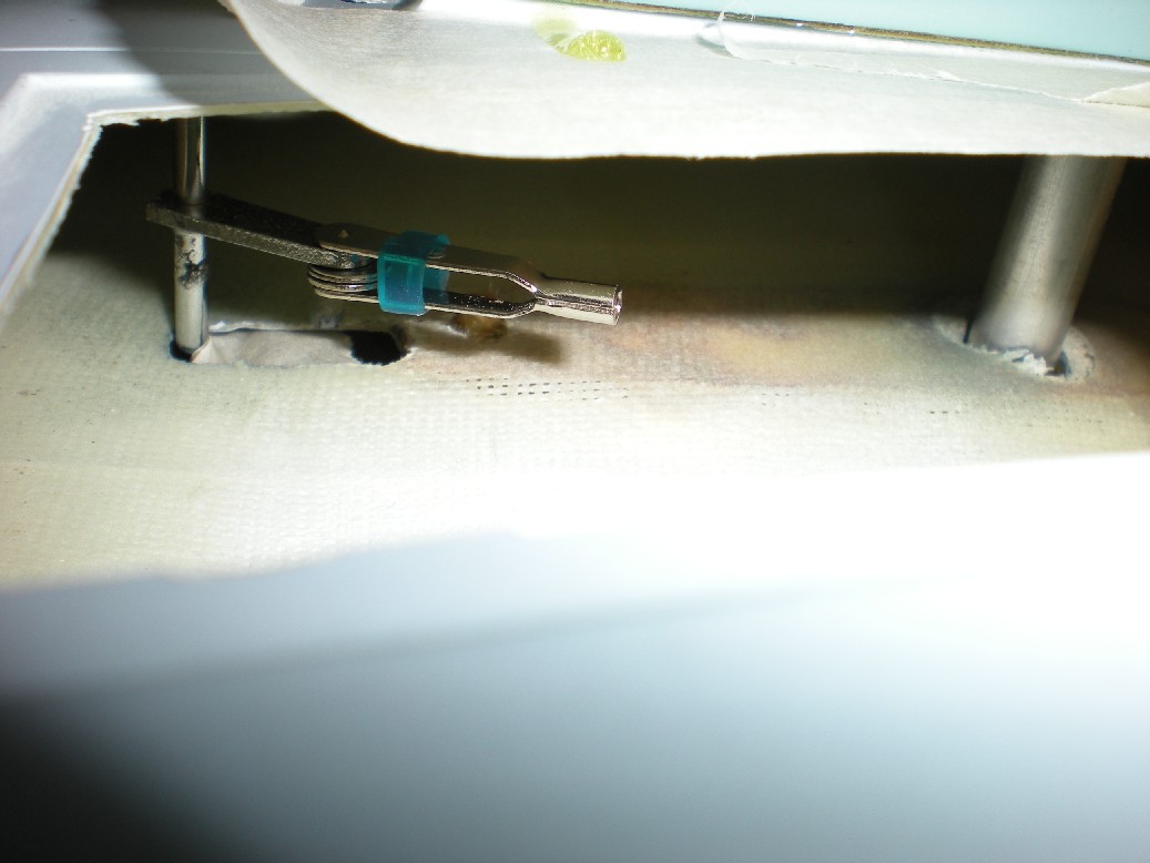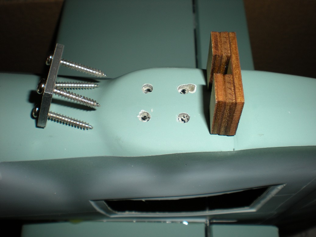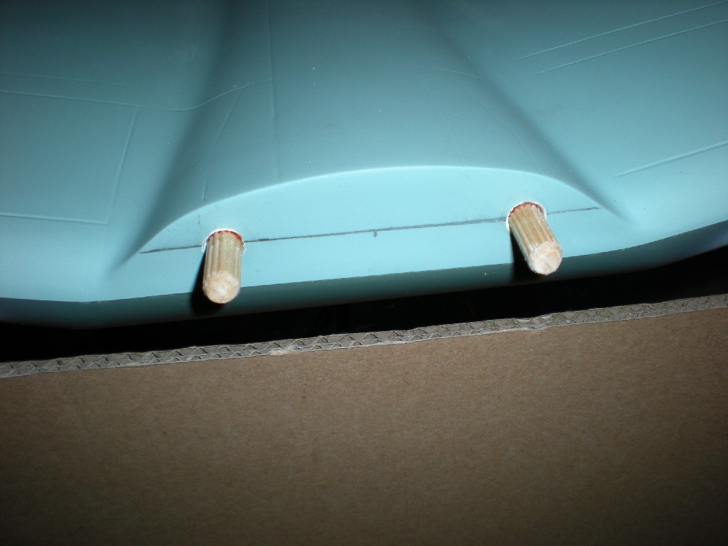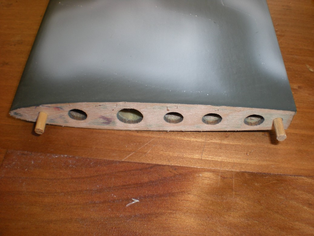 Finalmente se hacer los agujeros para las espigas que encajan las alas al fuselaje. Las espigas las he cambiado por otras más robustas.