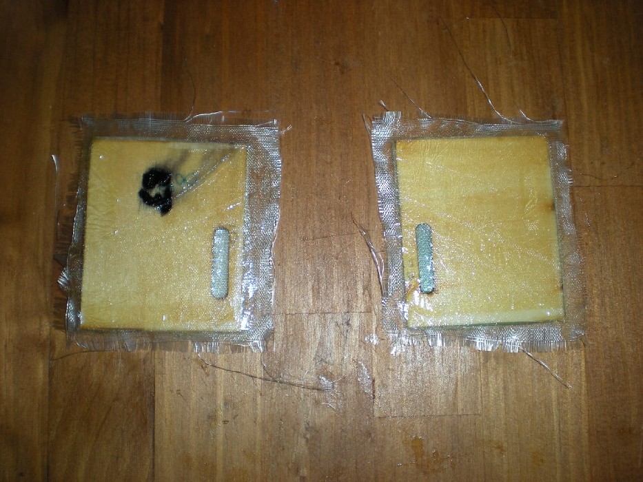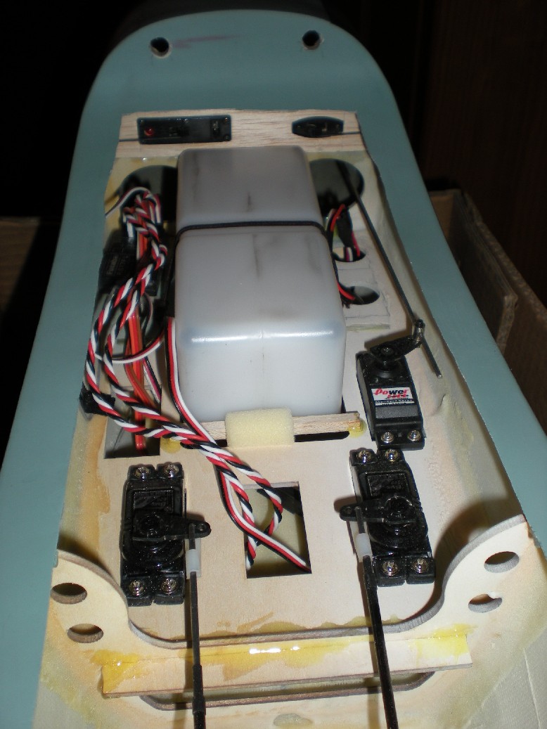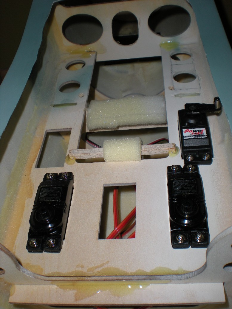 De nuevo, usando la informacion del foro, he visto que alguien tuvo problemas con las piezas de contrachapado donde se instalan los servos de las alas despegándoseles el servo de la madera. Para prevenir esto he enfibrado los de los alerones.
