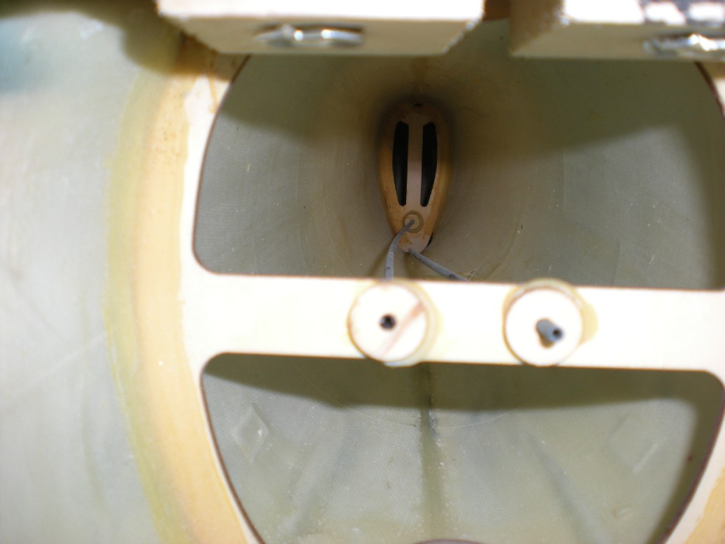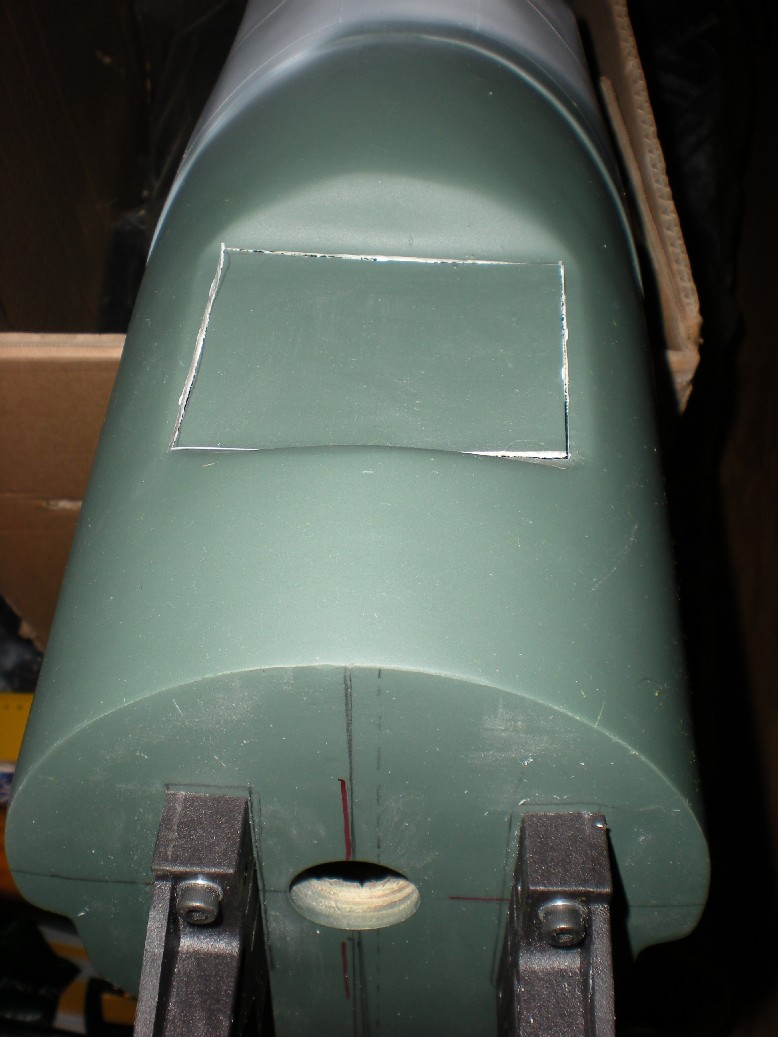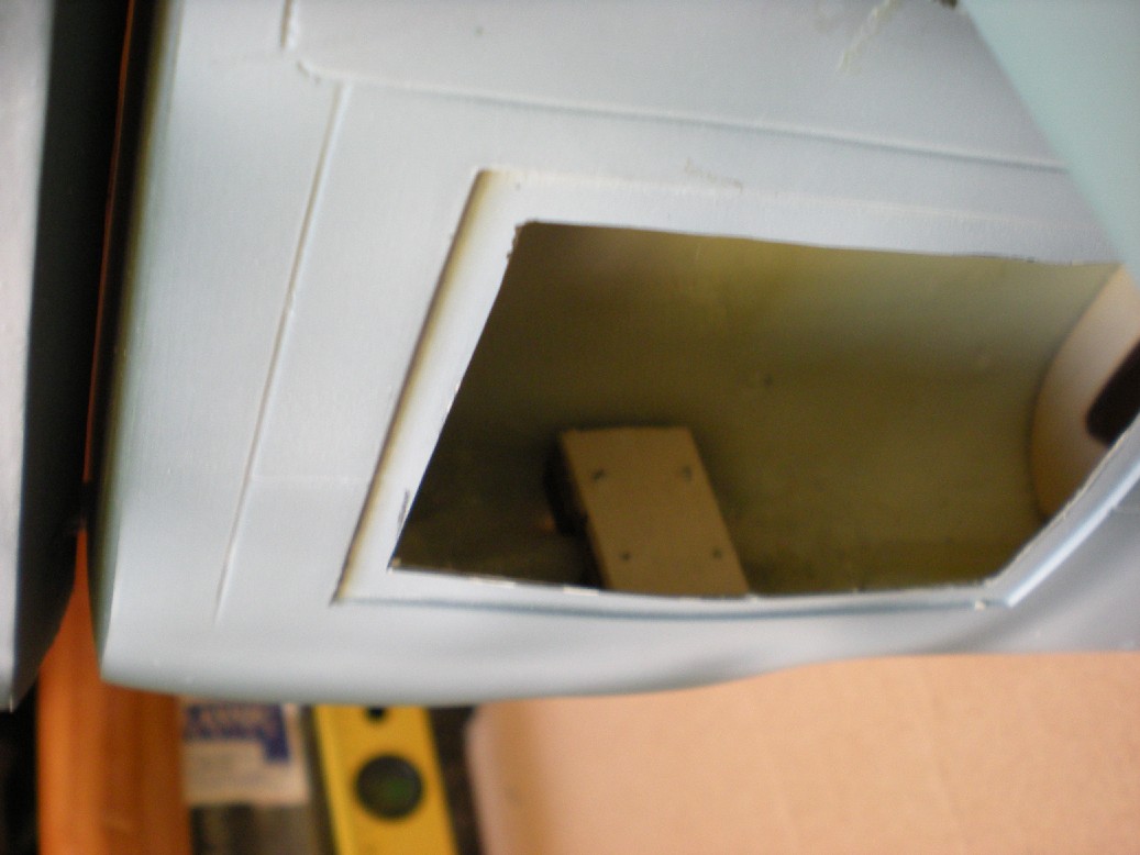 La situación original del depósito no se puede rebajar, porque debajo tiene la sección central de las alas y para ello habría que hacer un agujero considerable que podría comprometer la estructura. Entonces el señor Pepe, del club, me sugirió intentar ponerlo en el hueco del morro, que es bastante largo y solo habría que agrandar un poco más el hueco rectangular que hice para tener acceso a él, y funcionó.