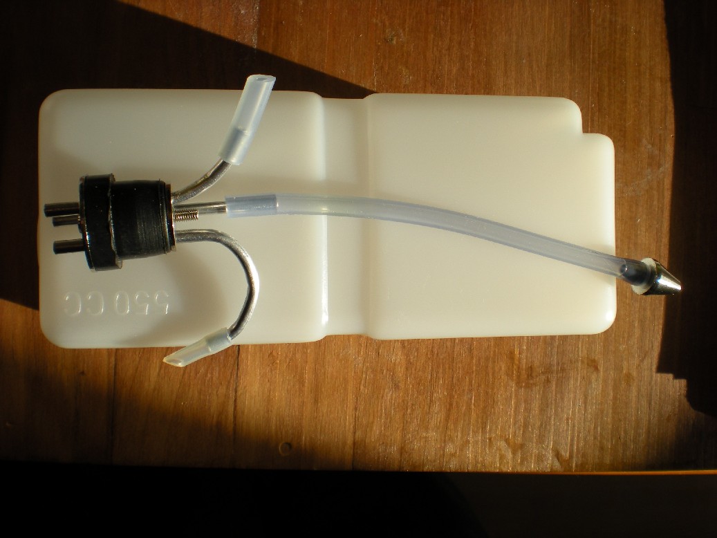 El resultado es poco satisfactorio. El motor no arranca debido a la colocación del depósito demasiado elevado. No hace más que tirar una lluvia de combustible por el tubo de escape mientras lo giro con el arrancador. Solo arranca con el avión invertido.