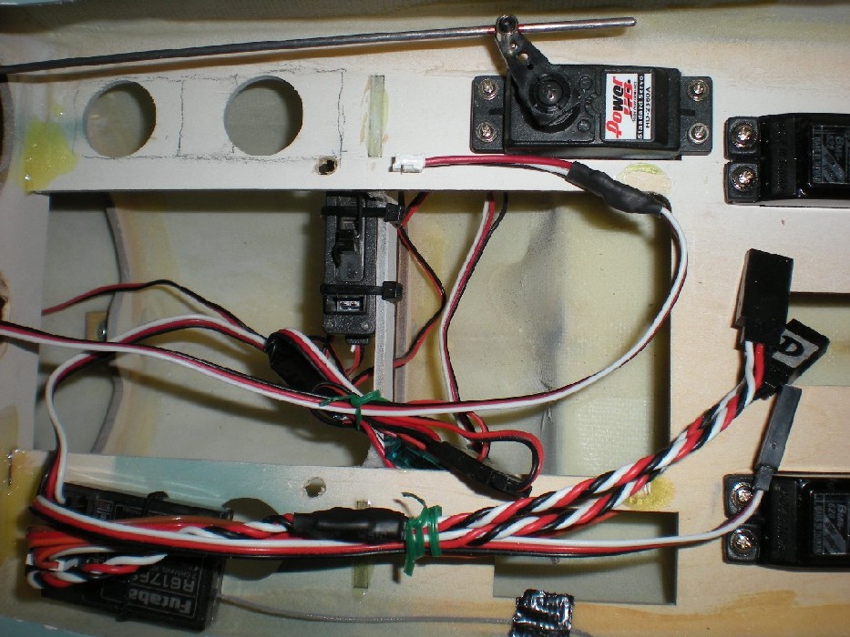 Los cables en espiral son de los servos de alerones, y el del centro que acaba en Y, de los flaps.
