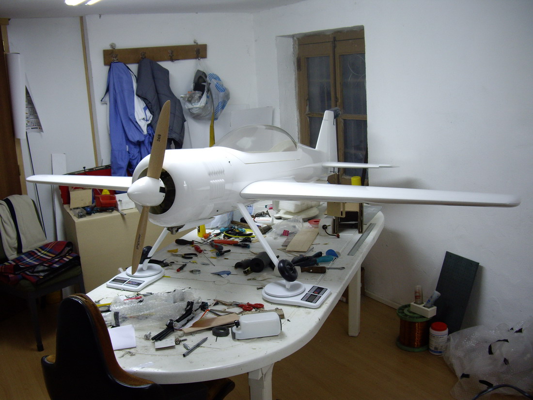 Creo que es muy poca pala para ese motor, el avion es precioso y como te lo has pedido en blanco podras personalizarlo a tu gusto.