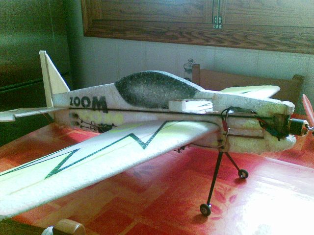 El avión tiene el cdg un poco retrasado, lo intentaré ajustar colocando algún plomo. Decir también que lo más frágil desde mi corta experiencia de 2 días es la bancada del motor, ya se partió dos veces al aterrizarlo, y eso que el más brusco fue el del final del video. Un poco de ciano y arreglado. También cabe señalar que el EPP que cubre las ruedas saltó en el primer aterrizaje.