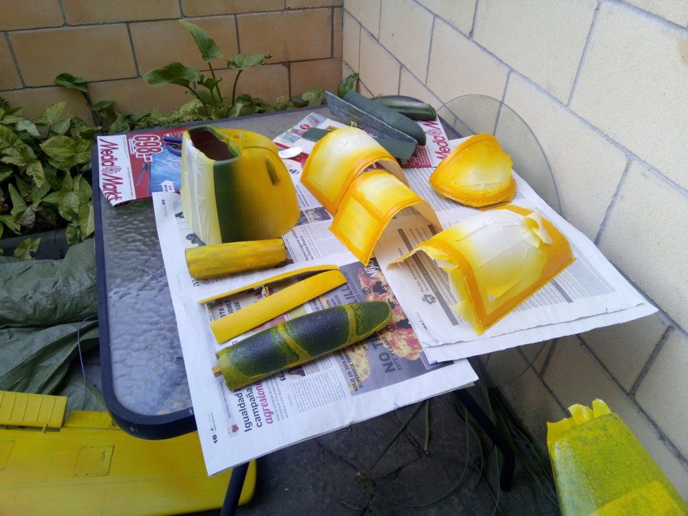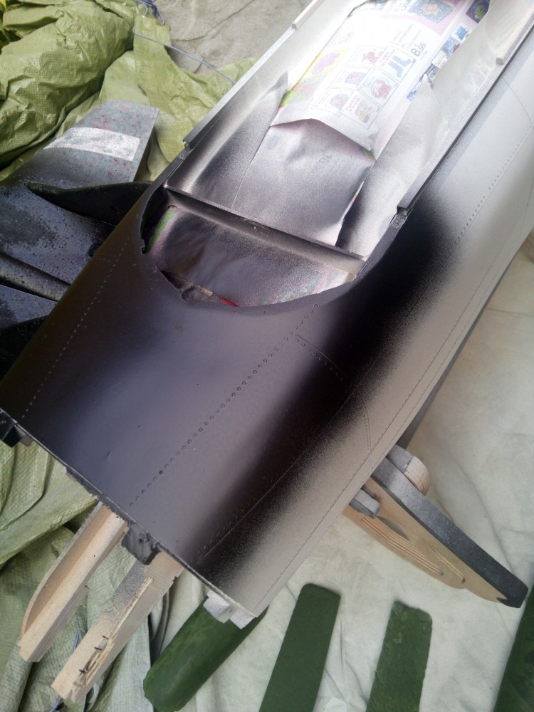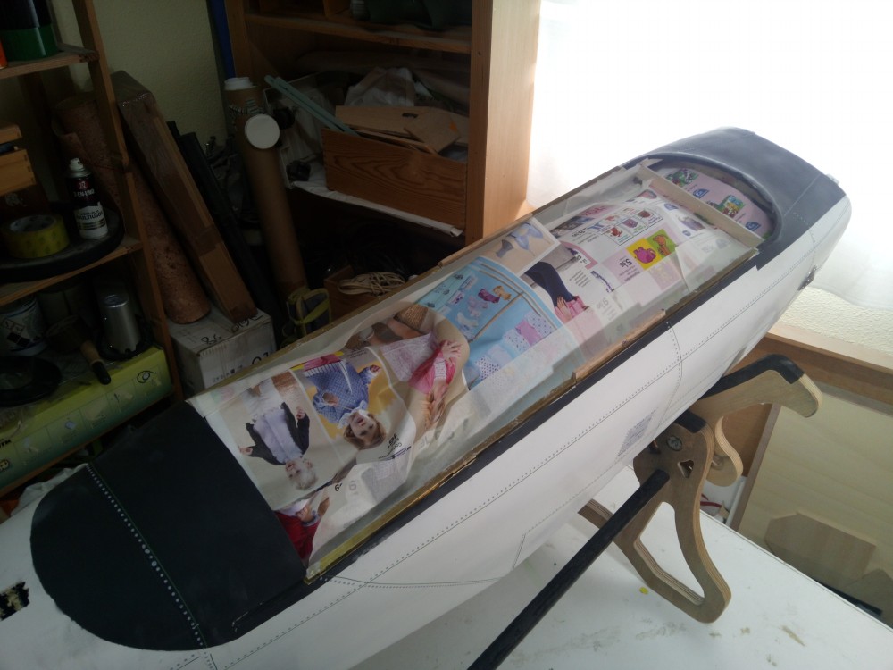 Lo primero ha sido enmascarar las partes de las cabinas y los huecos del fuselaje.