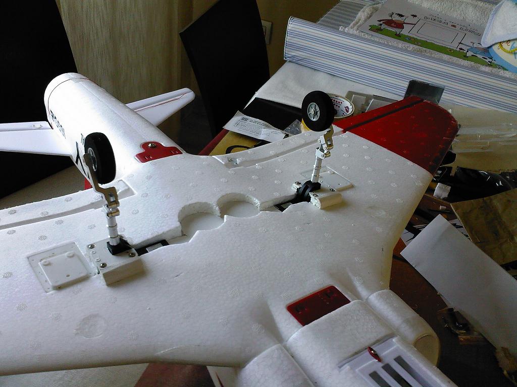 Efectivamente colibri, ese es el procesador que he puesto, como dices va perfecto. Bueno, la instalación del tren me ha costado un poquito pero doy por finalizado el trabajo, ha quedado francamente bien, lo he reforzado todo con balsa, sobretodo el delantero, ya que hay muy poca base para sujetarlo, el giro de rueda en este servo se realiza con el cable que trae, he podido aprovechar el servo que va en la nariz del T45 para tirar del cablecito, sólo he tenido que cambiar la posición del servo, cambiarle el brazo por uno doble y darle una gotita de epoxi. El tren de las alas lo he tenido que poner apurando todo el espesor del ala, sin llegar a traspasar y el medio centimetro que no he podido empotrar lo he cubierto con balsa, también para poder atornillar, lo he pintado todo de blanco y para mi gusto ha quedado bastante bien, se ve robusto y fiable. En el hueco donde se alojan las ruedas, he colocado una base de balsa de 1mm y pintado de blanco, para tapar las imperfecciones que se quedan al vaciar el corcho. Tengo fotos en el movil, pero no he podido meterlas aun en el ordenador para subirlas. Tengo ganas de probarlo ya jeje.