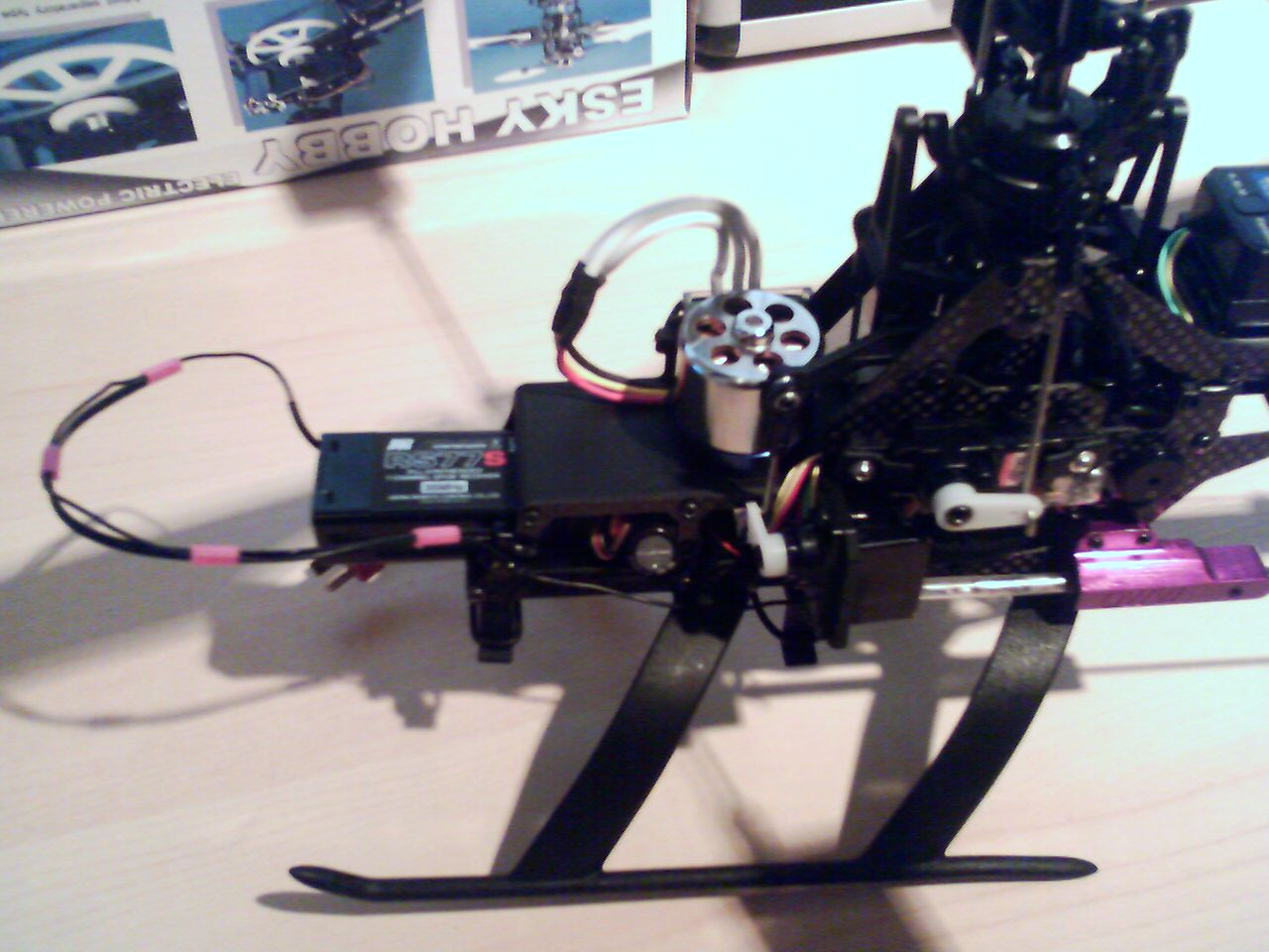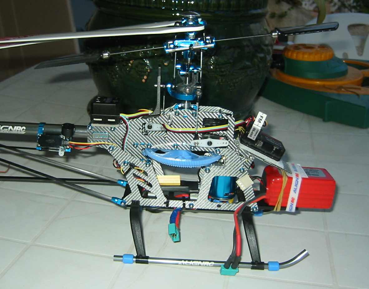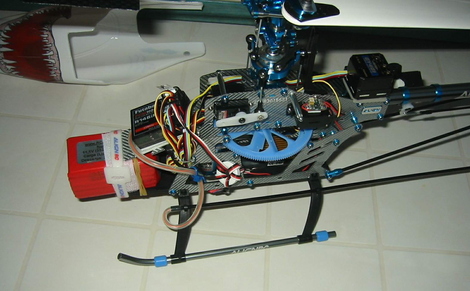 Yo nunca he tenido que montarlas en ningún otro heli. Este es un T-Rex Se, variador de 35A, receptor Futaba R146ip, lo demás normal.