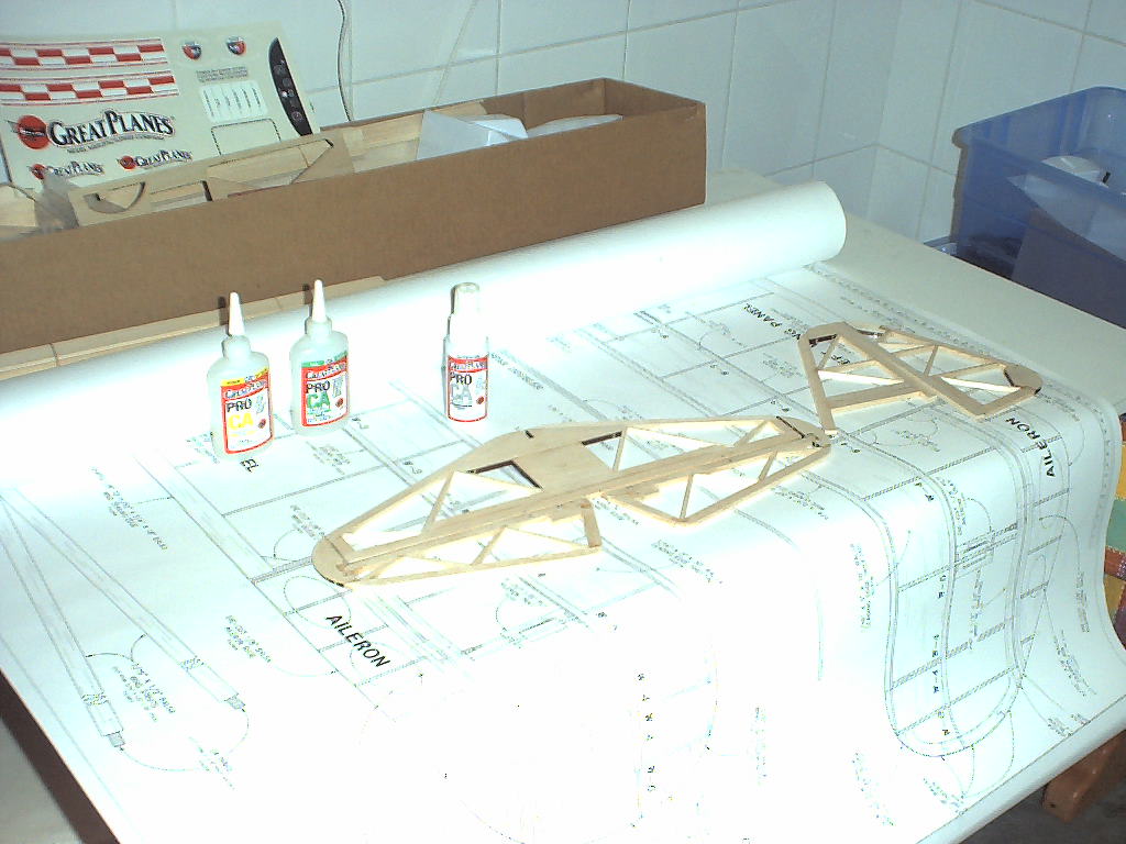El ala está casi lista, el emprenaje tambien y el fuselaje ya está en un 70%, lo que no me gustó mucho es que el fuselaje se arma de muchas piesas lo que podría generar roturas innecesarias, ojalá todo vay bien.
