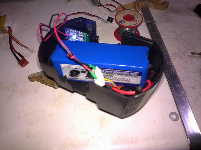 Le cabe perfectamente en el habitaculo una lipo 5s1p de 1800 mhA y funciona muy requetebien. Solo le falta tener pecutor
