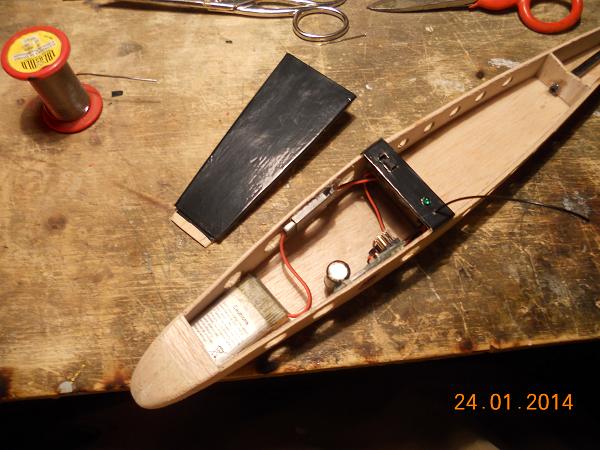Pues puse unas piezas de balsa de 3x3mm que van de costilla a costilla pegadas al borde de salida. El condensador que puse es de 1500uF 25V, y es el que recomendaron en un foro donde me meti a investigar. Me alegro que te guste :mrgreen: