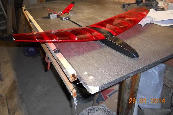 Hoy he pasado un buen rato en el taller haciendo cositas... ya he terminado todo el entelado (aunque espero poder resolver una cosa... es que me di cuenta al final que se me torcio un poquito un ala, que se tuercen facilmente al no tener enchapado el borde de ataque ni nada de eso!! Espero no tener que hacer ese ala OTRA VEZ porque ya tuve batalla entelandolo!!), tambien toda la cola terminada y ahora mismo esta secandose el epoxy con la cola en su sitio. Terminado el Metodo Calera tambien que ha quedado muy bien y seguro para la fijacion de las alas... solo queda basicamente meter las transmisiones en cuanto este seca la cola!!