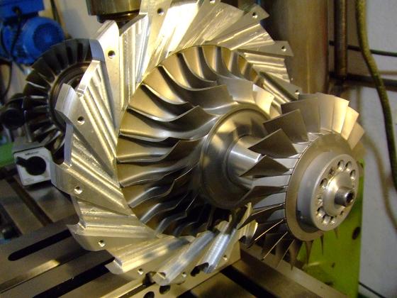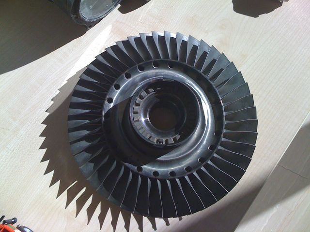 Para este asunto voy a emplear partes usadas de dos turbinas comerciales ambas A.P.U., de ellas tengo solo las etapas de compresor, una turbo-centrífuga y otra axial, mas la rueda de turbina.
