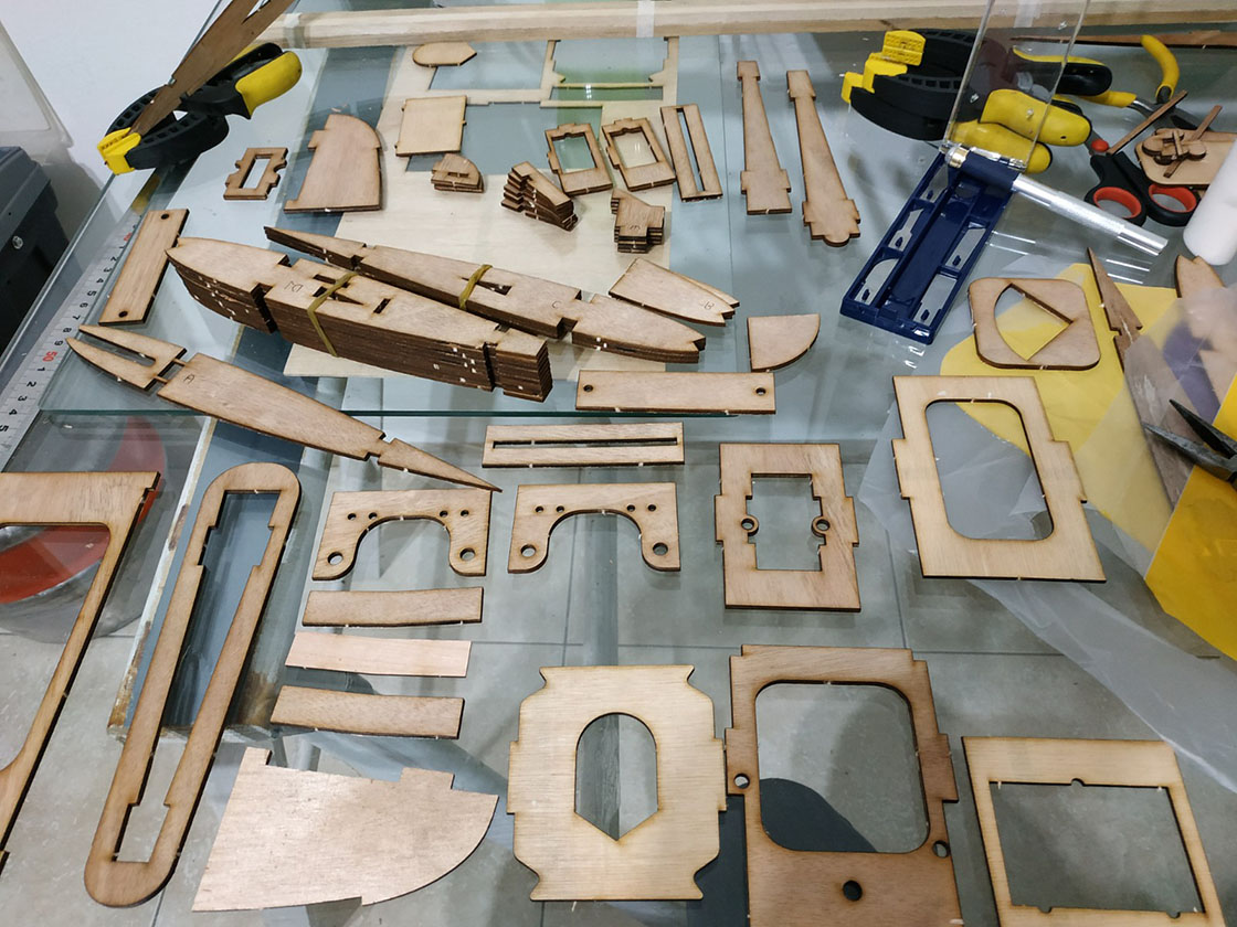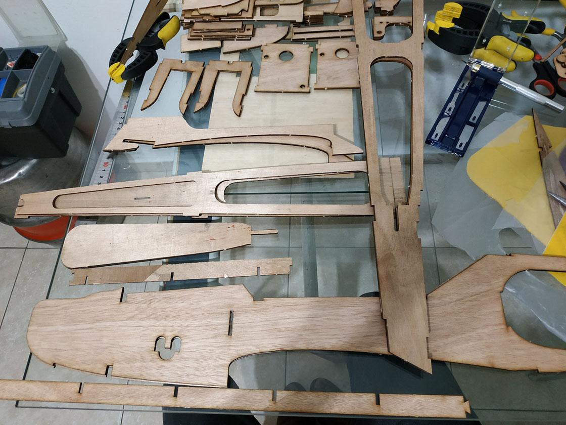 Conseguí un kit semi completo cortado en láser, sin grupo de cola que lo haré yo mismo en balsa desde plano, el kit consta de los materiales necesarios para construir las dos semialas completas sin enchapado, lo tendré que comprar y terminarlo una vez finalizado el trabajo con el ala, fuselaje completo y por supuesto tendré que comprar todos los accesorios que ya tengo en una lista, los cortes son todos lo necesarios del plano en madera dura, sino me equivoco terciado de 2,5 mm, he tenido algún que otro problemita con el desmontaje de las piezas, a pesar de haberme ayudado con un cutter algunas costillas se han dañado porque a veces el corte láser no es tan profundo y tratando de desmontar he dañado algunas piezas que he reparado inmediatamente, creo en parte que es por mi falta de experiencia con éste tipo de kits cortados o pre-cortados, es la primera vez que tengo placas cortadas a láser en la mano así que espero que todo vaya mejorando, en fin comienzo a postear fotos de la construcción paso a paso de éste clásico de Great Planes, espero que les sirva por si andan con ganas de construirlo y que les guste, abrazo a todo, estamos en contacto!!!!!!