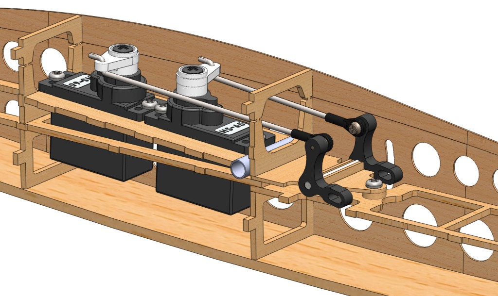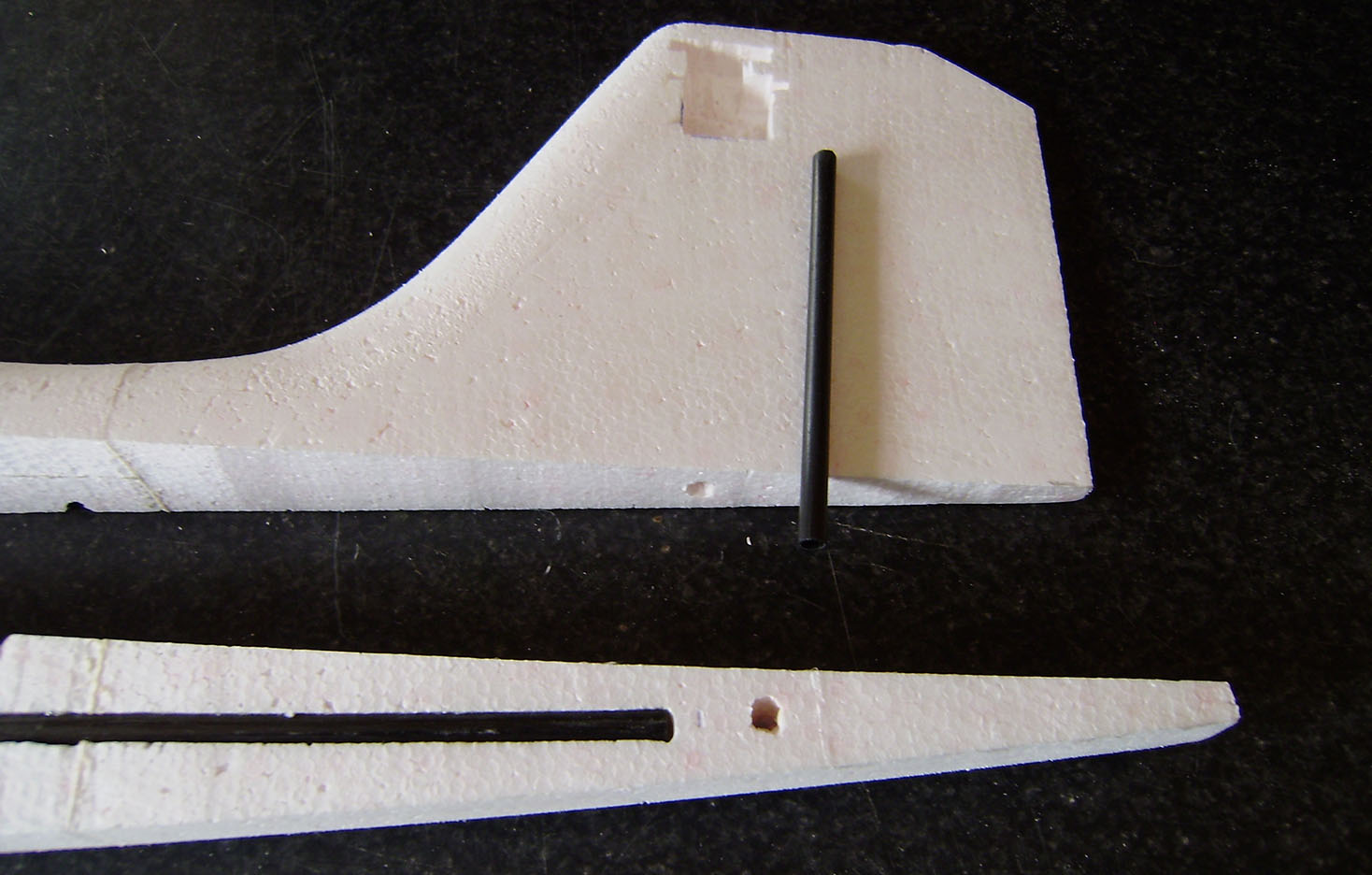 Hueco para varilla de carbono de refuerzo del tramo de cola y cajeado del servo de profundidad.
