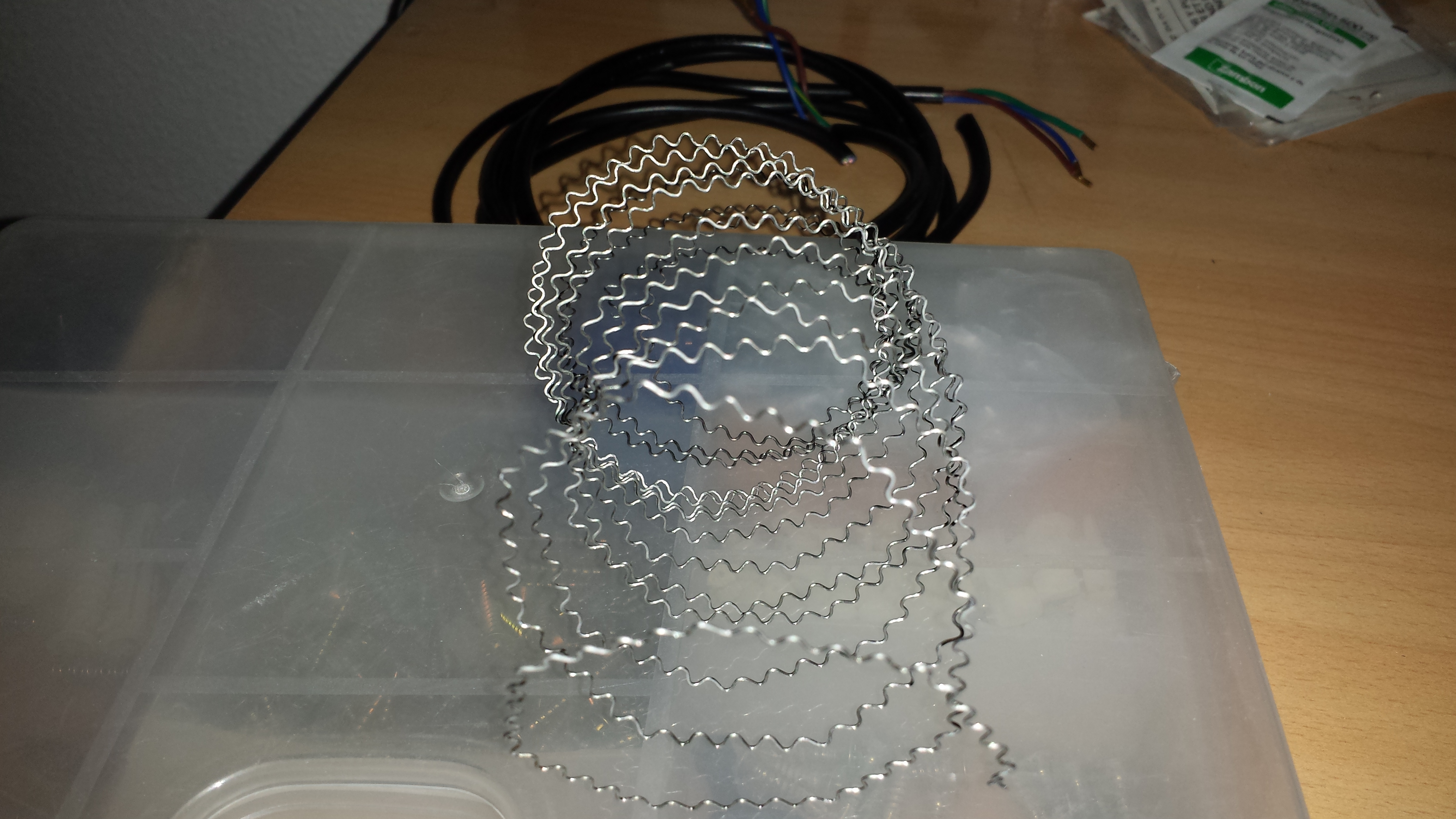 corcho.El hilo se puede sacar de secadores o barras de estufa.La que utilizo la saco de los microondas a grill.