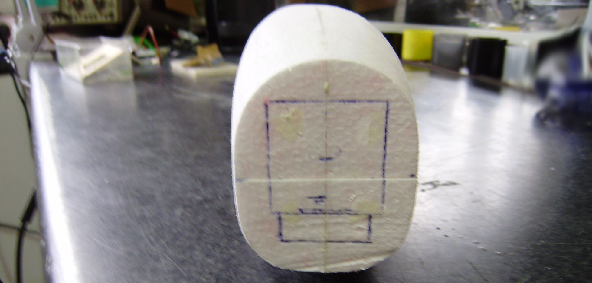 Calculamos donde será su posicion y la marcamos.Como la superficie ya esta preparada para pintarla,es mejor pegar trocitos de papel y marcar sobre el.