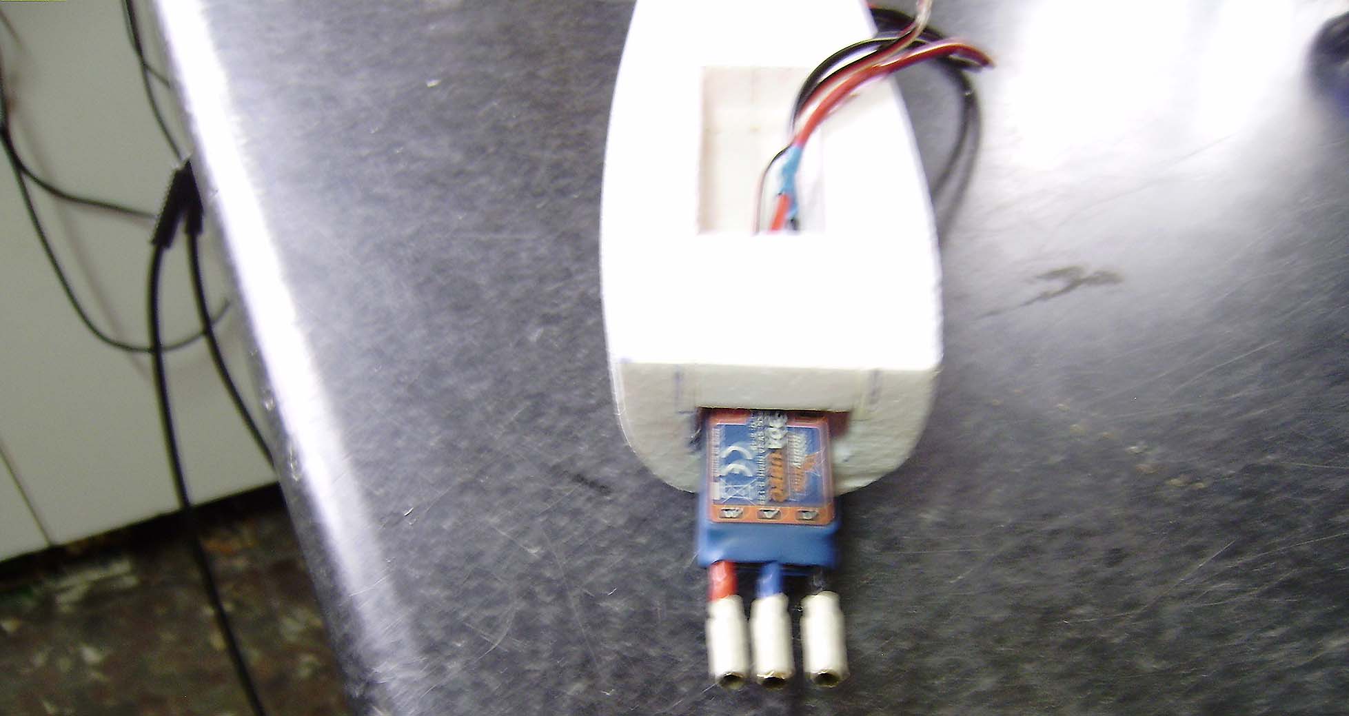En ese hueco vamos a meter el receptor y ademas es por donde saldra el cable del variador.