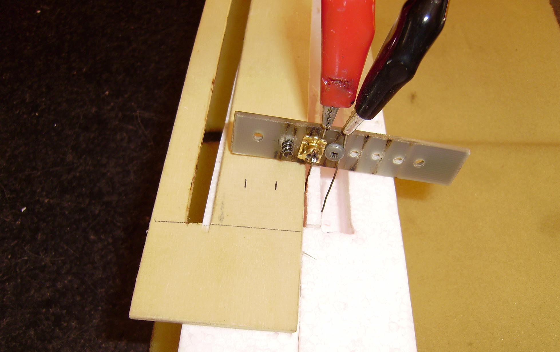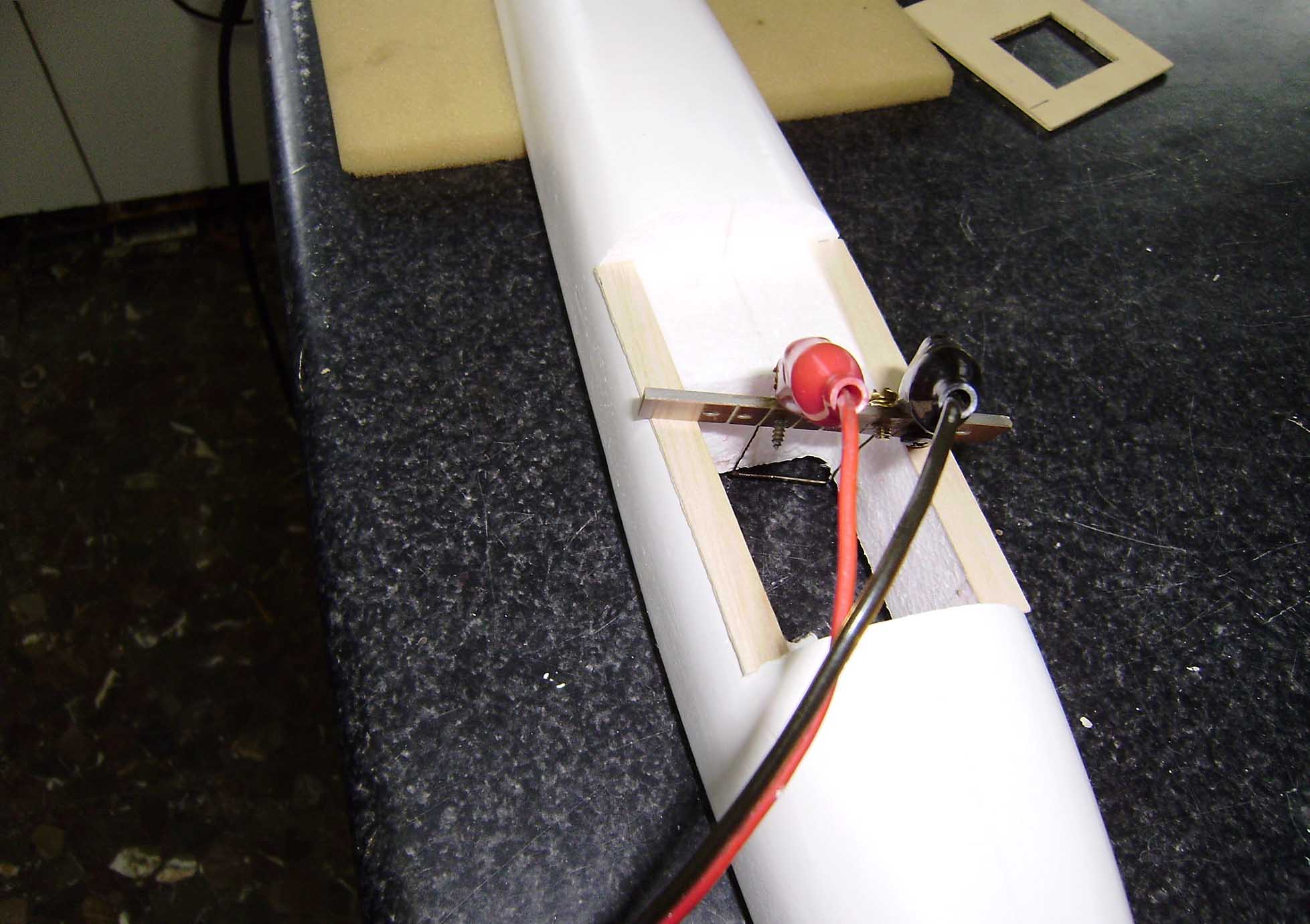--Cortar la seperficie movil y en el centro colocar una varilla de carbono de 4 mm x 7 Cm de largo.